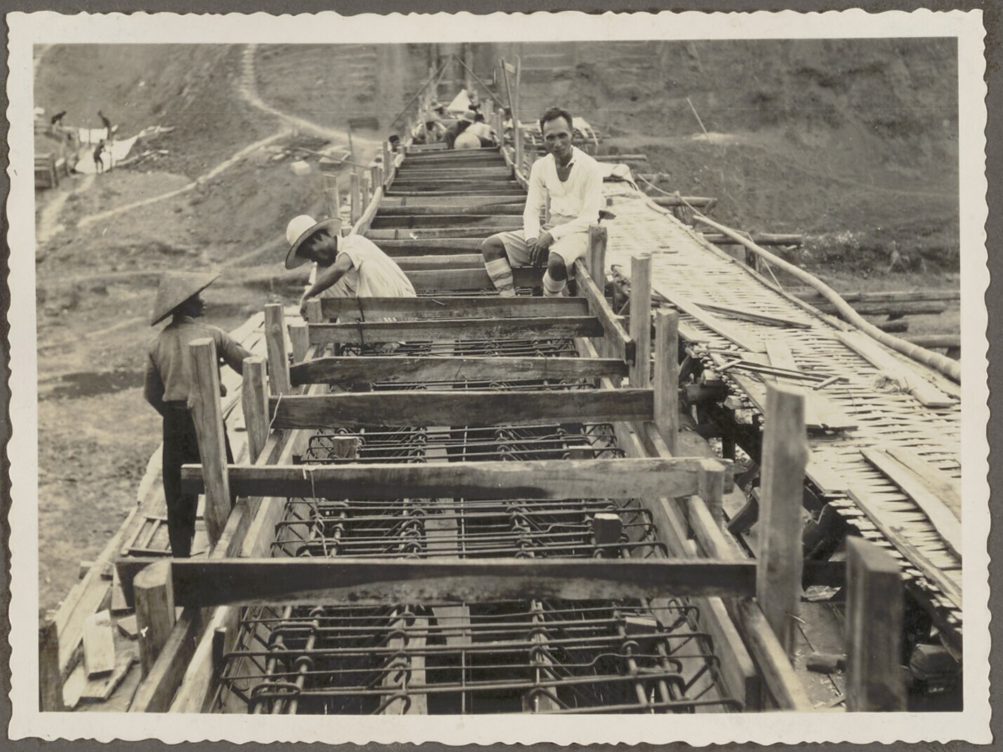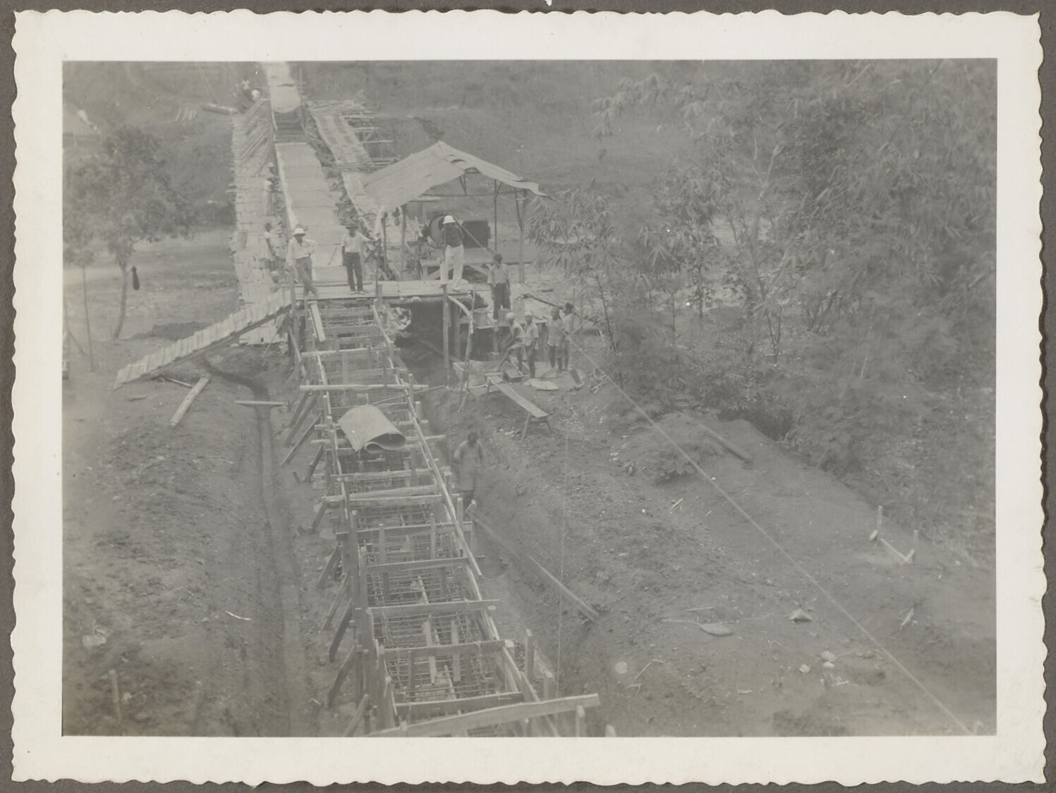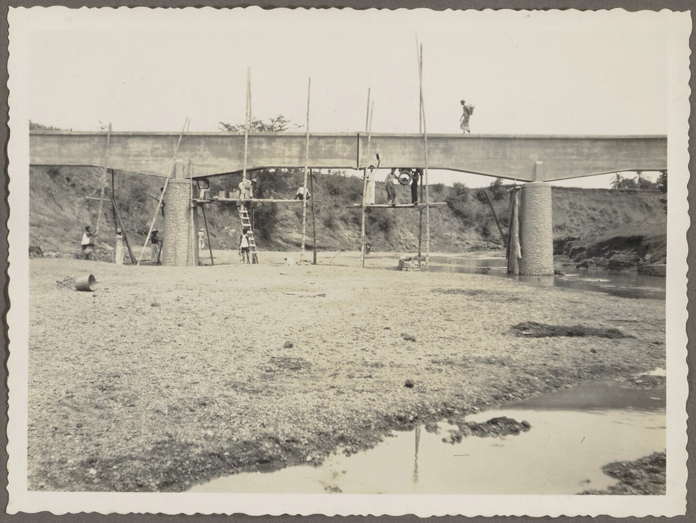 Javaanse arbeiders aan het werk bij de brug K.M.Ba.1a