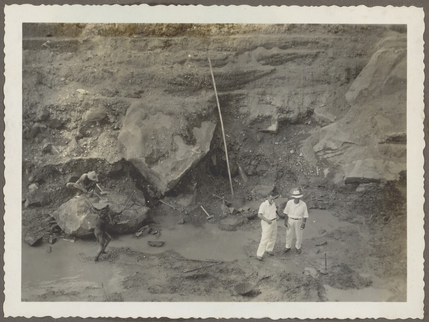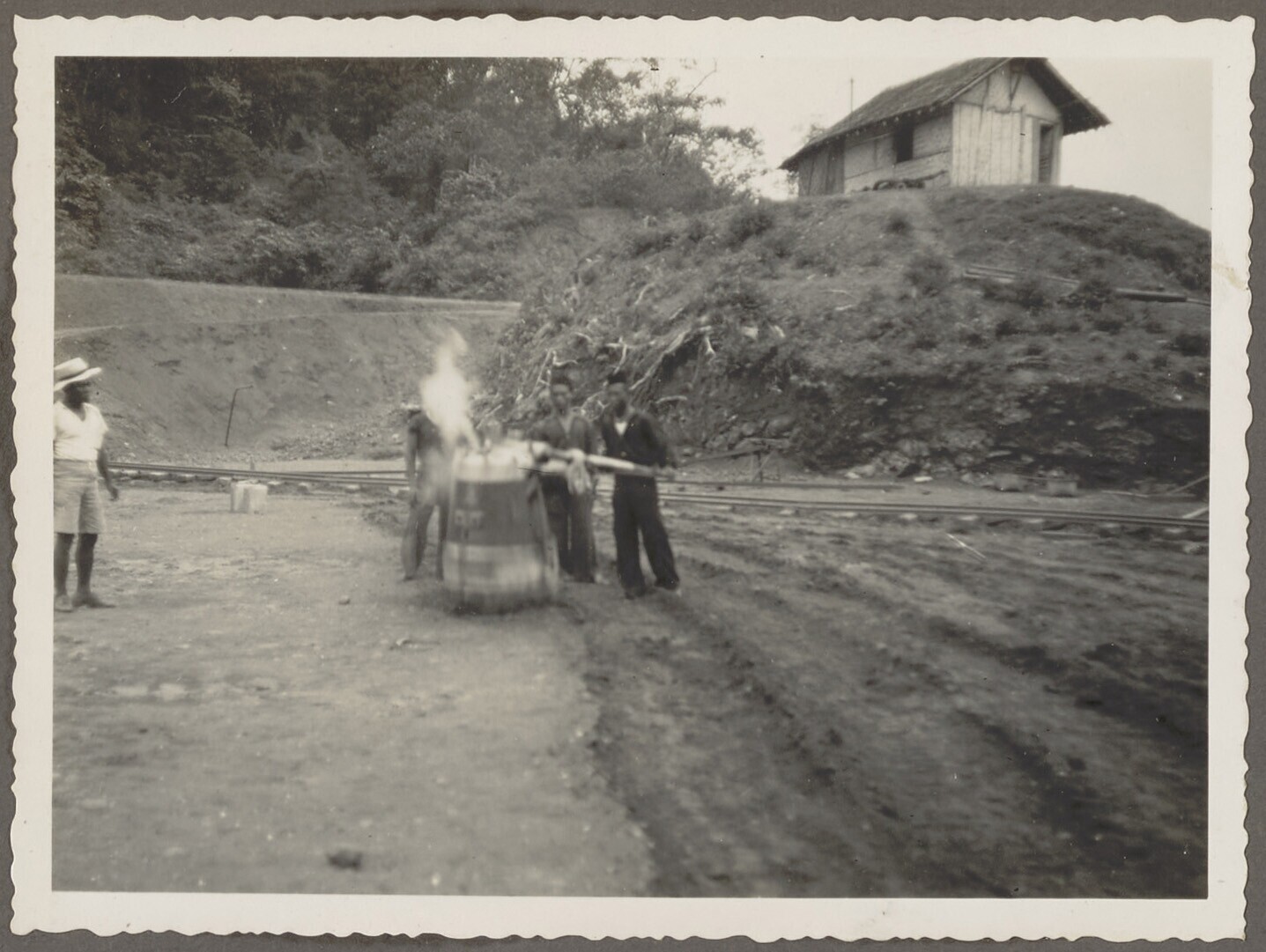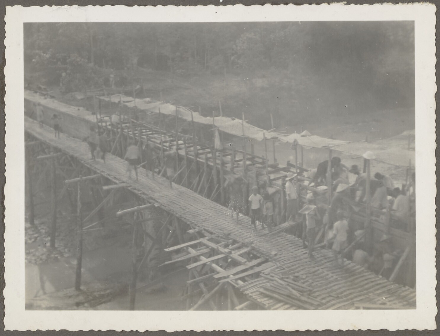 Javaanse arbeiders aan het werk bij de brug K.M.Ba.1a