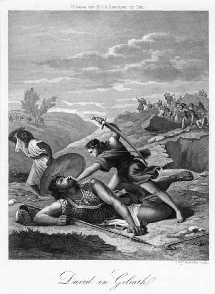 Gravure, voorstellende David en Goliath, vervaardigd...