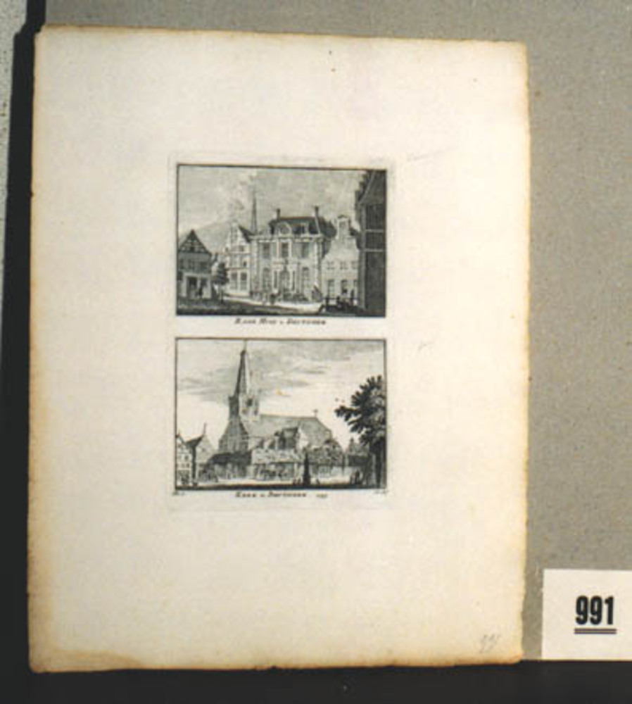 Gravure "Raad Huis te Deutichem. Kerk te Deutichem. ...