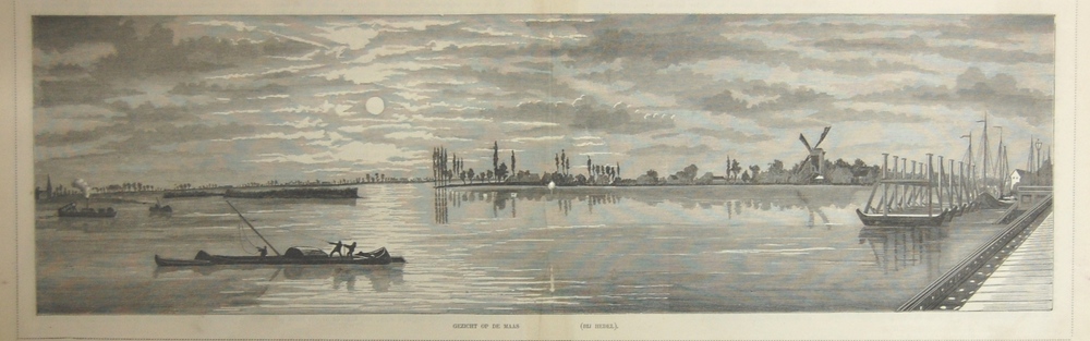 gezicht op de Maas met schipbrug bij Hedel. Gravure.