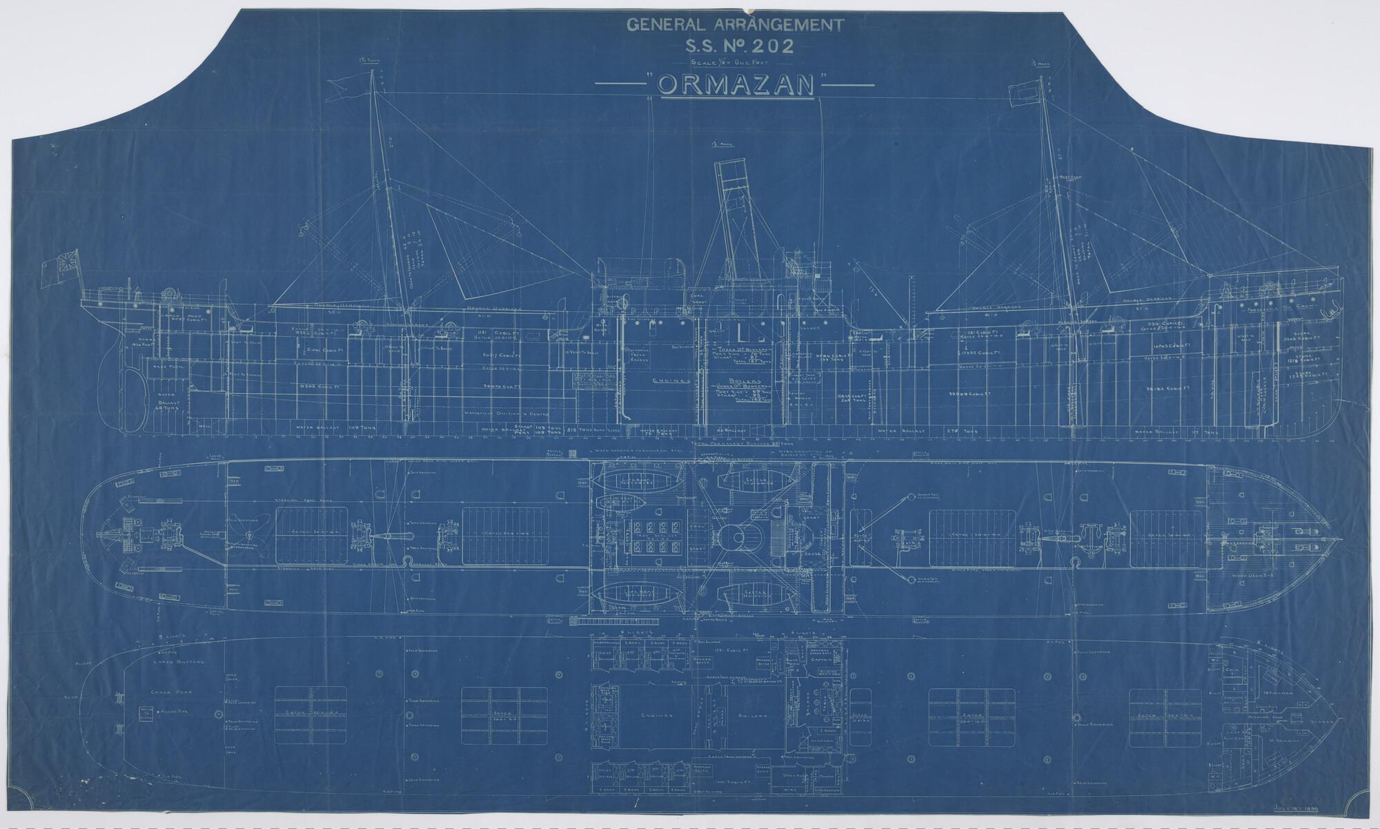 Algemeen plan van het ss. Ormazon, met langss.cheeps...
