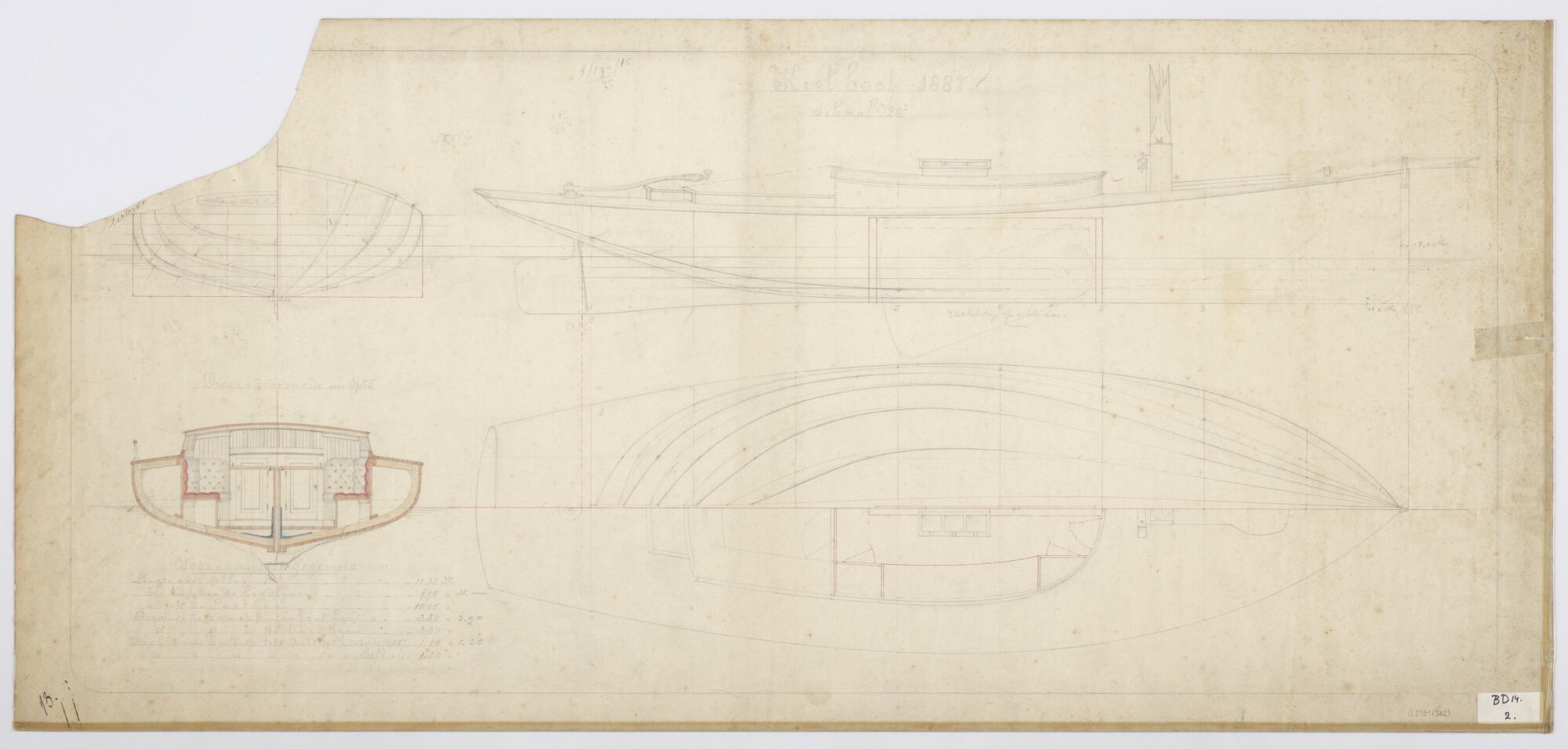 Tuig- en lijnenplan van het centerboardjacht Surprise