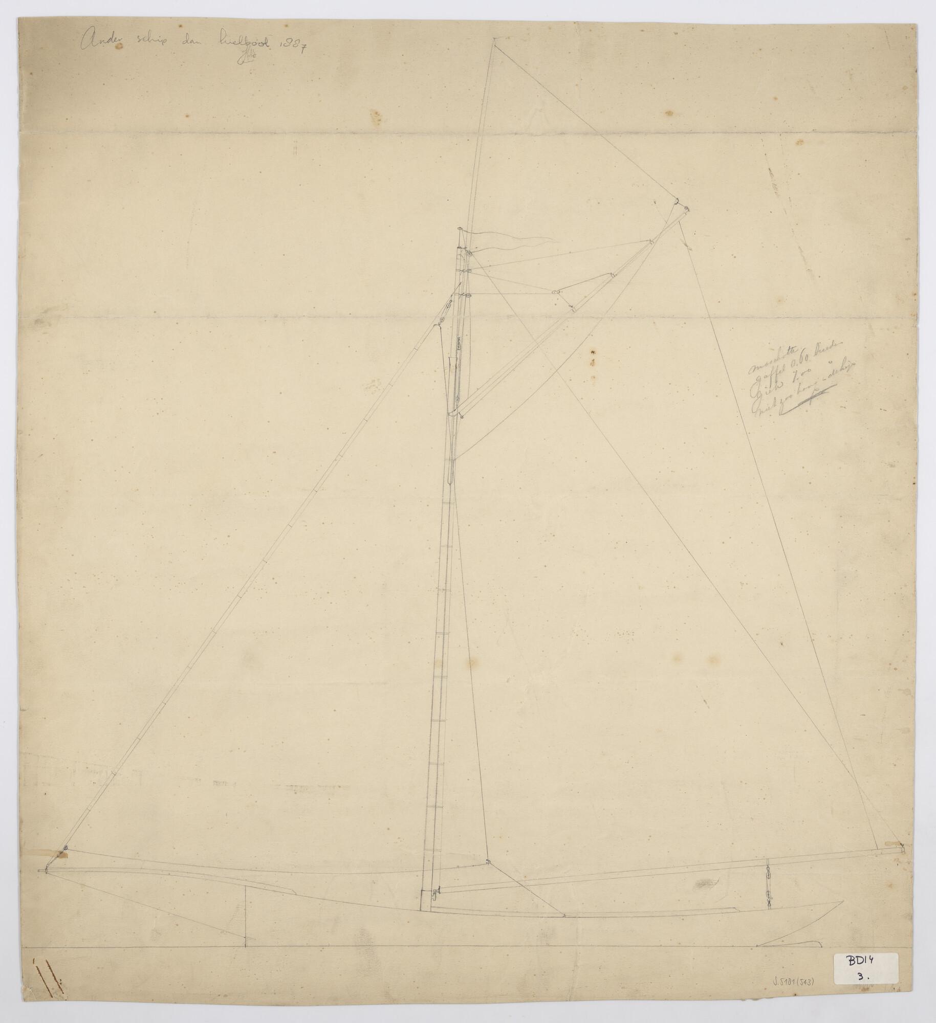 Tuigplan van een midzwaardjacht