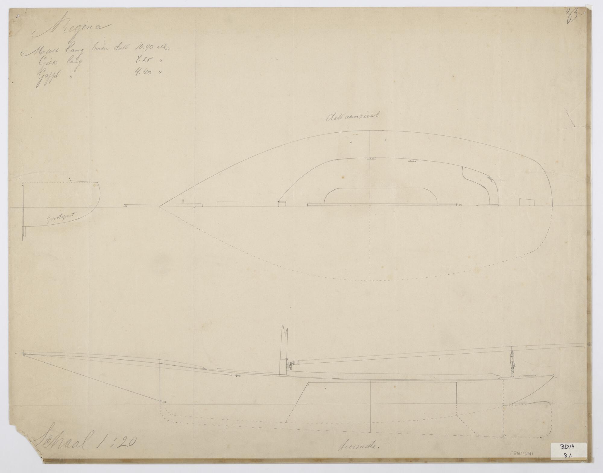 Algemeen plan van het kielzeiljacht 'Regina'