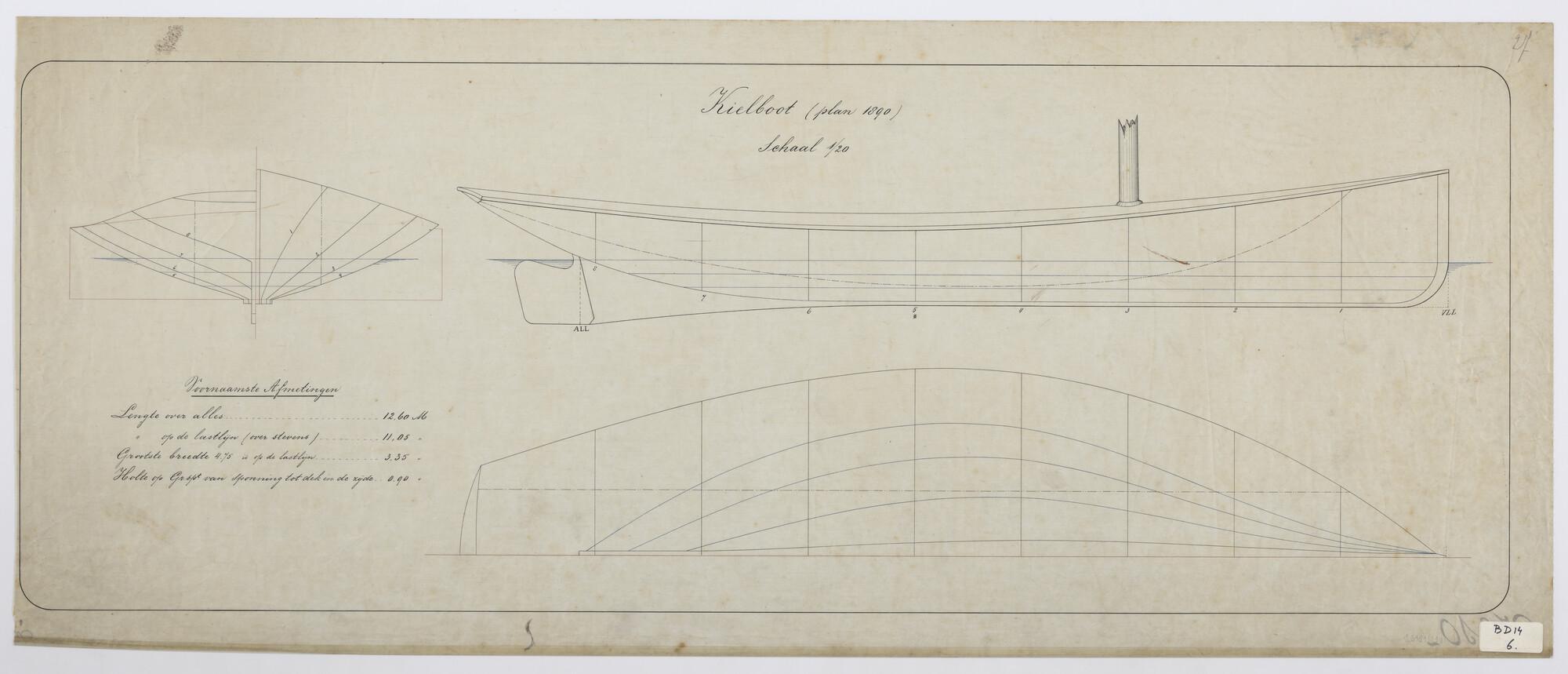 Lijnenplan van een kieljacht