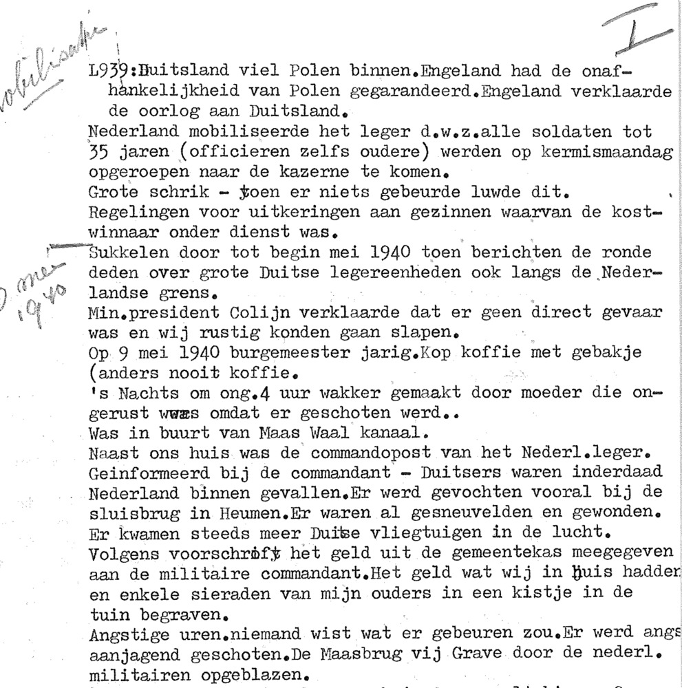Opstel over de Tweede Wereldoorlog uit 1989. Auteur ...