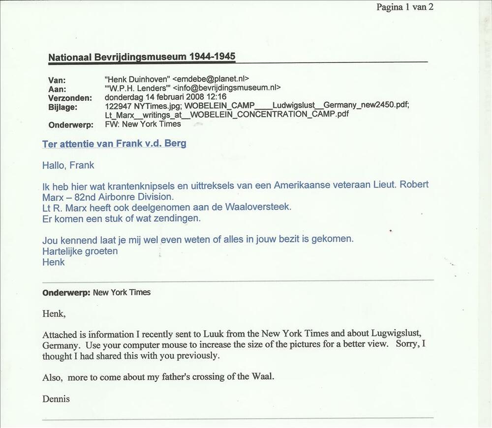 brief van Henk Duinhoven aan Frank v.d Berg