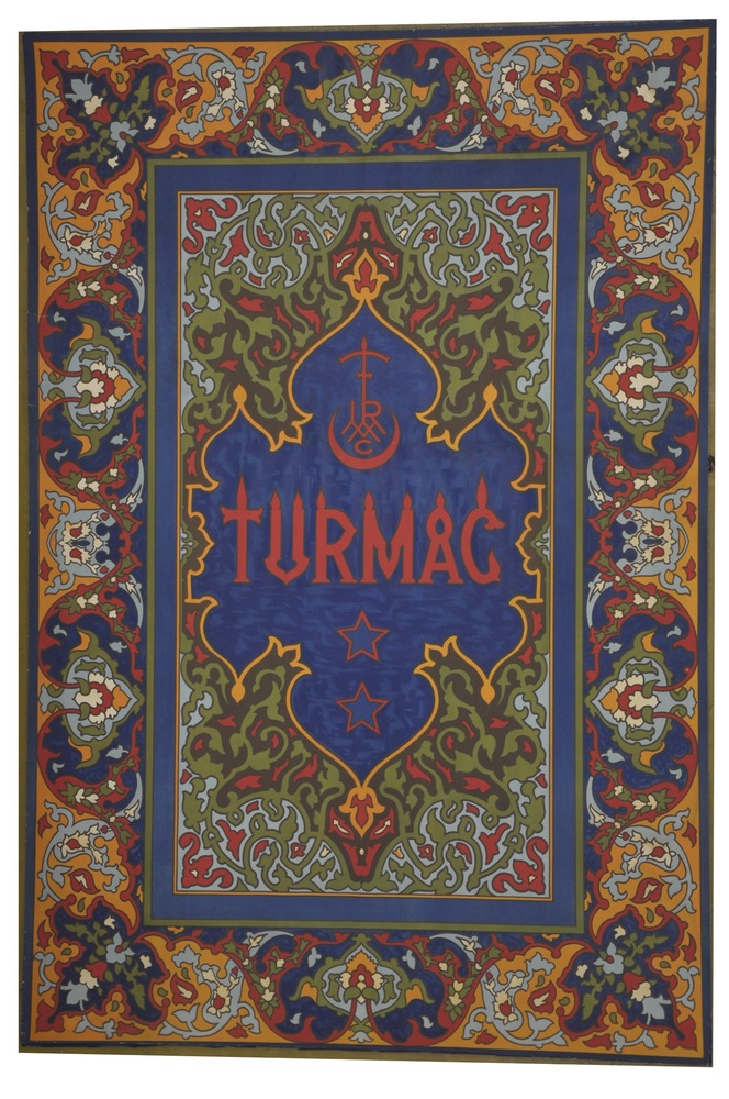 Gekleurde reclameplaat met tekst TURMAC Voorontwerp ...