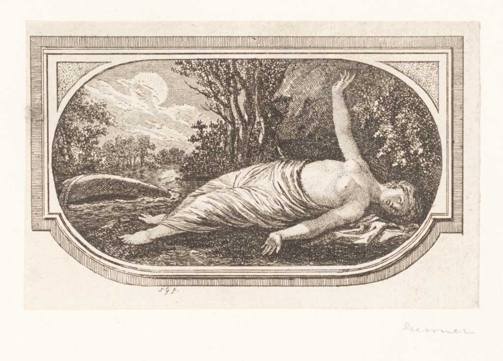 Landschap met half naakt vrouwenfiguur