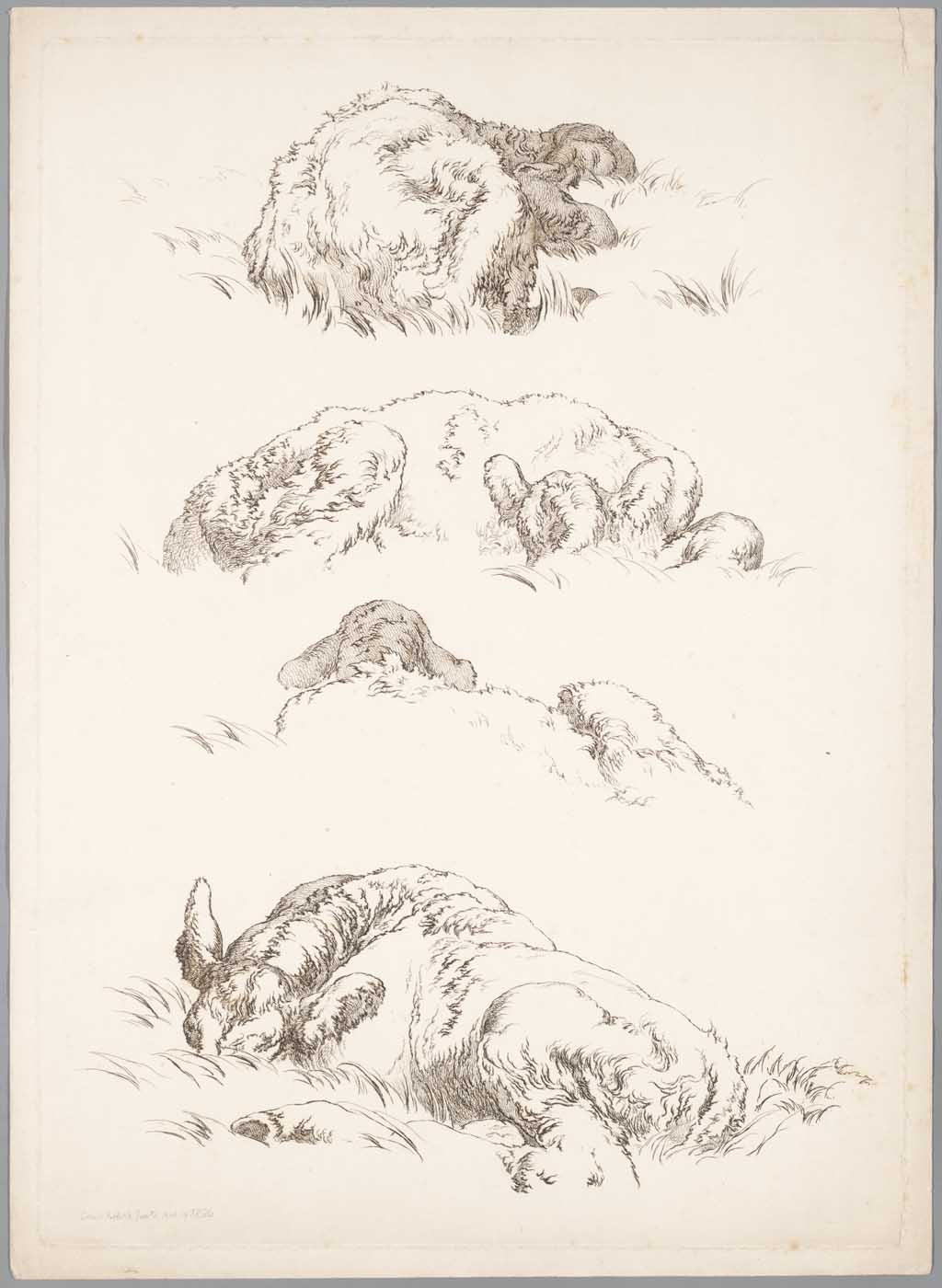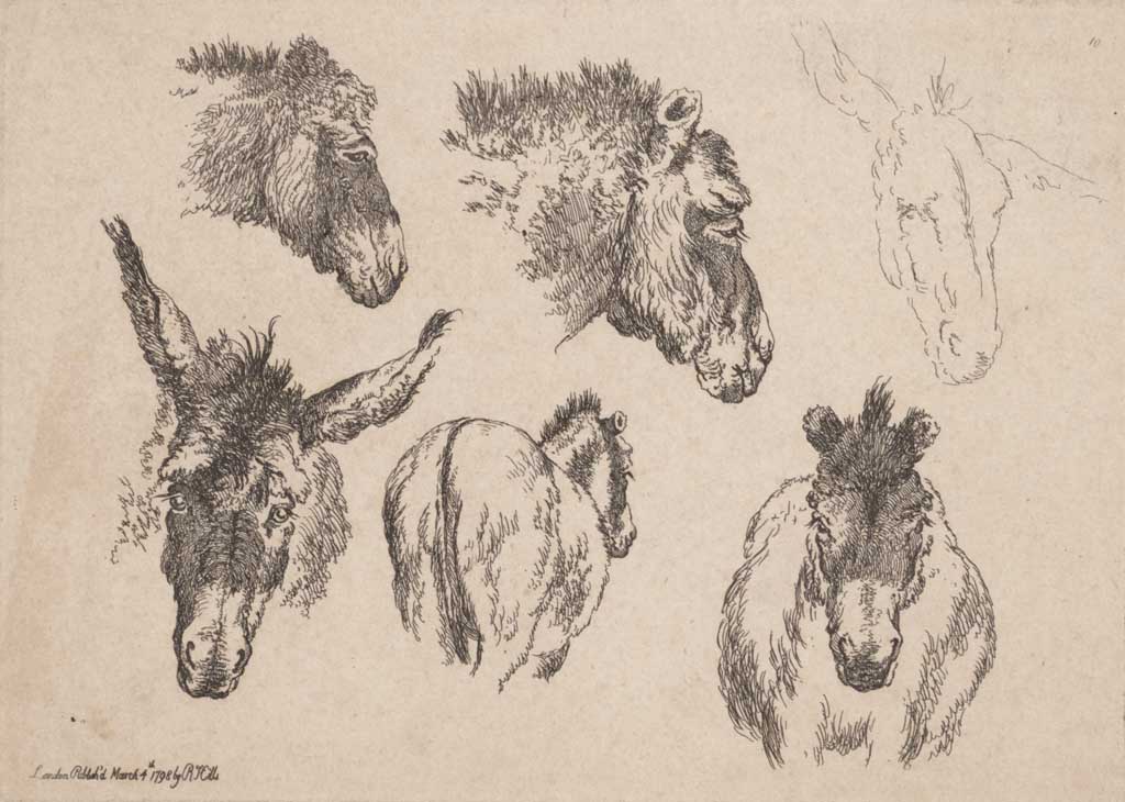 Vier studies op één plaat van een ezel