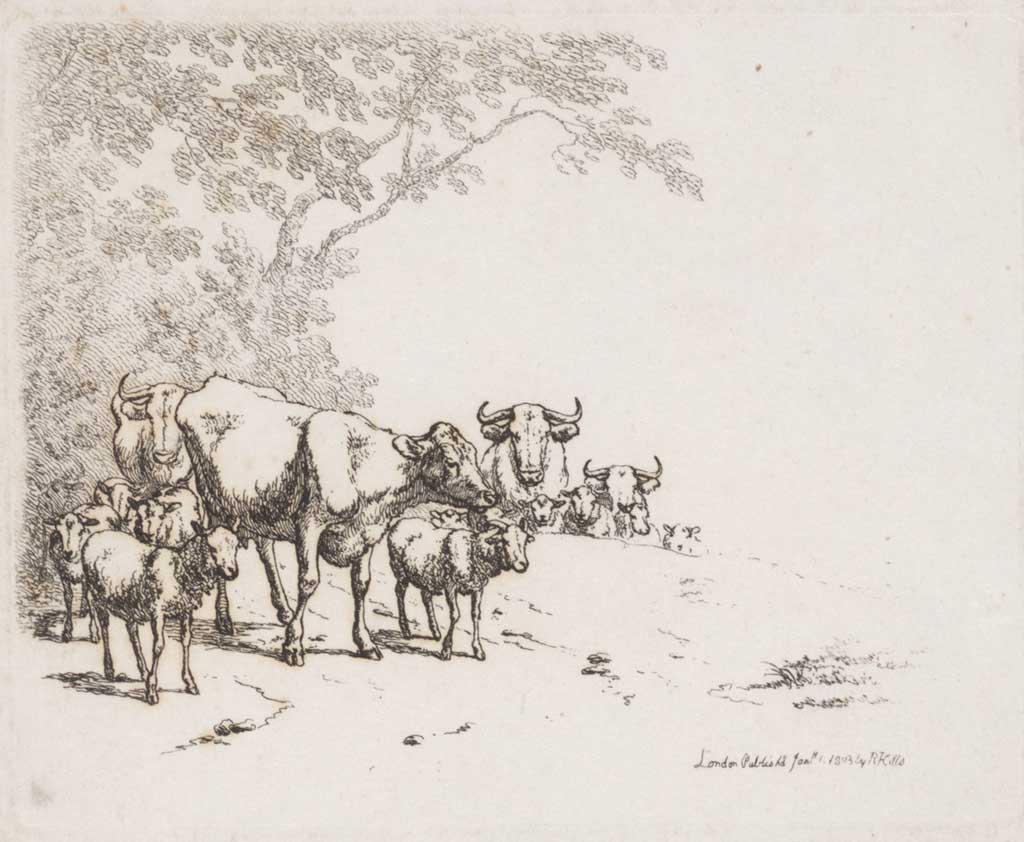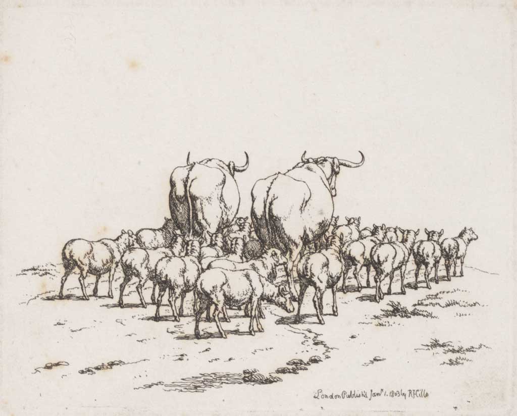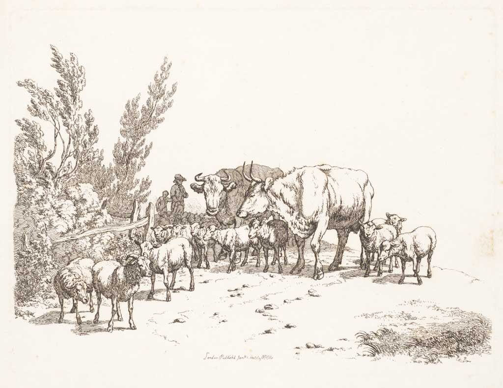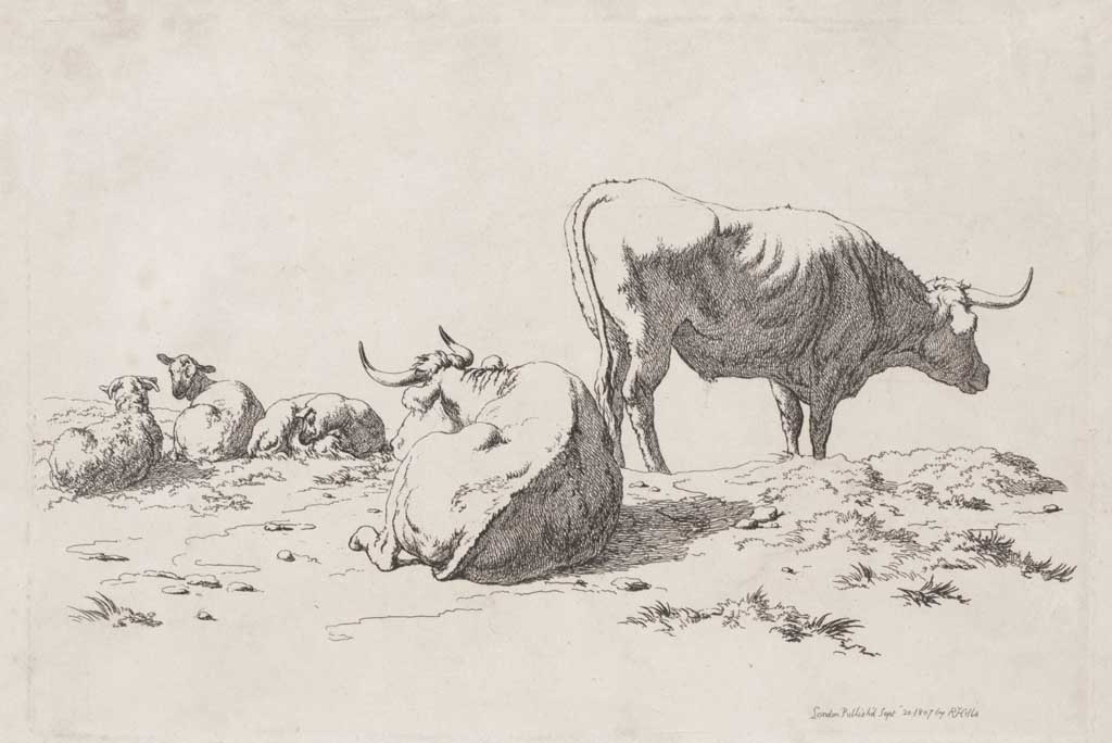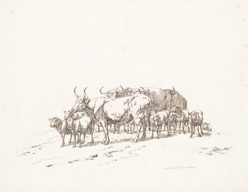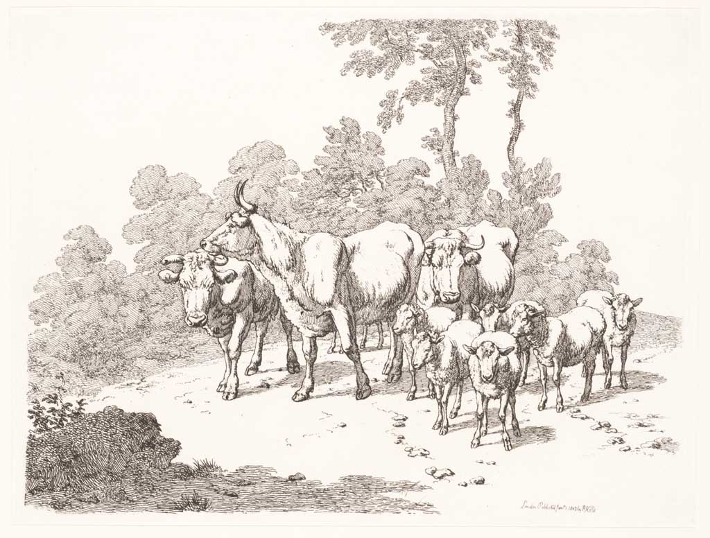 Twee koeien en drie schapen