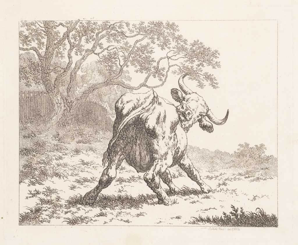 Krabbende koe bij hek