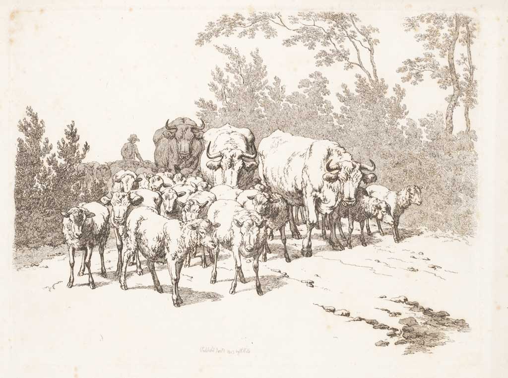 Kudde schapen en koeien