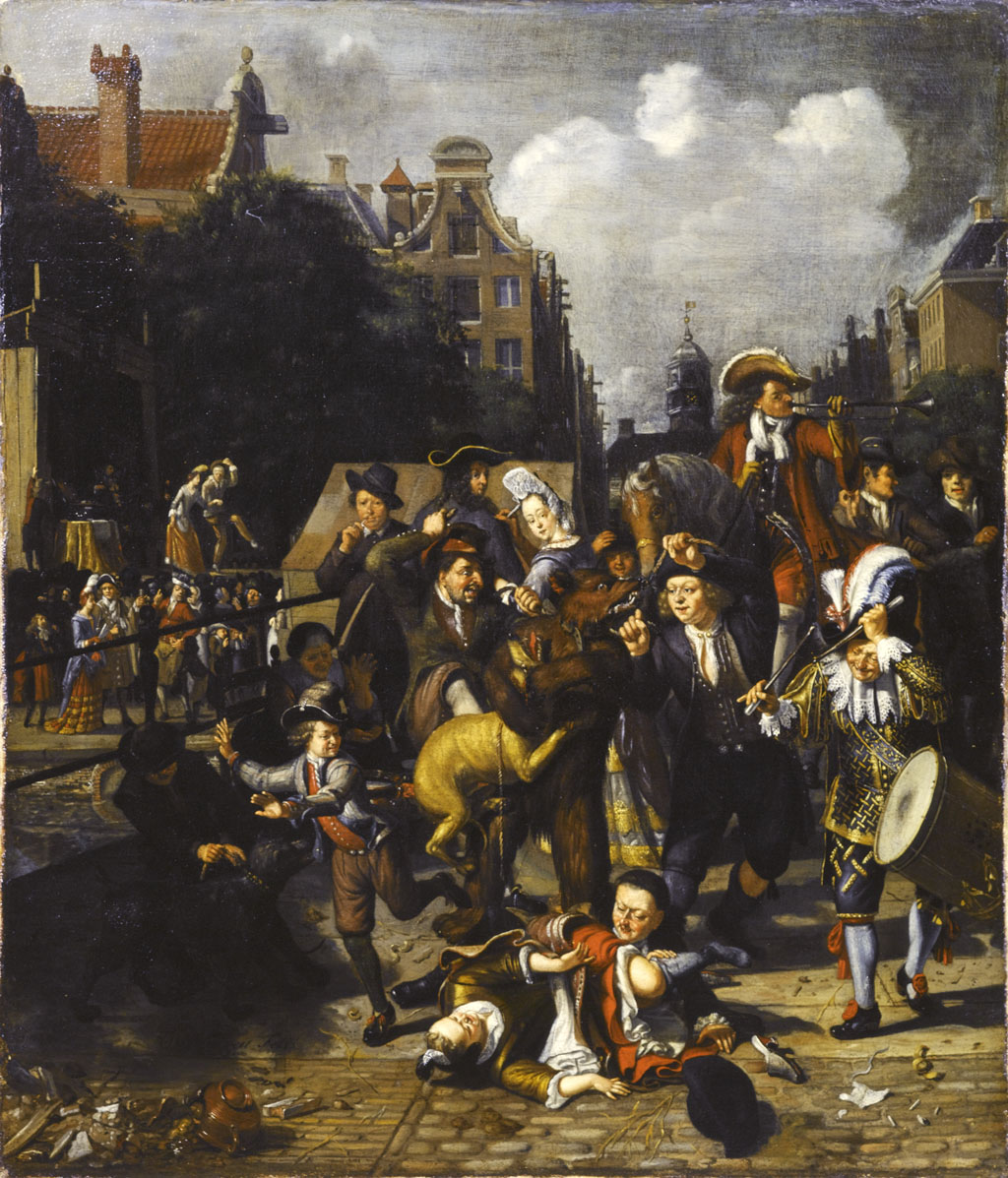 Amsterdams stadstafereel met berenleider