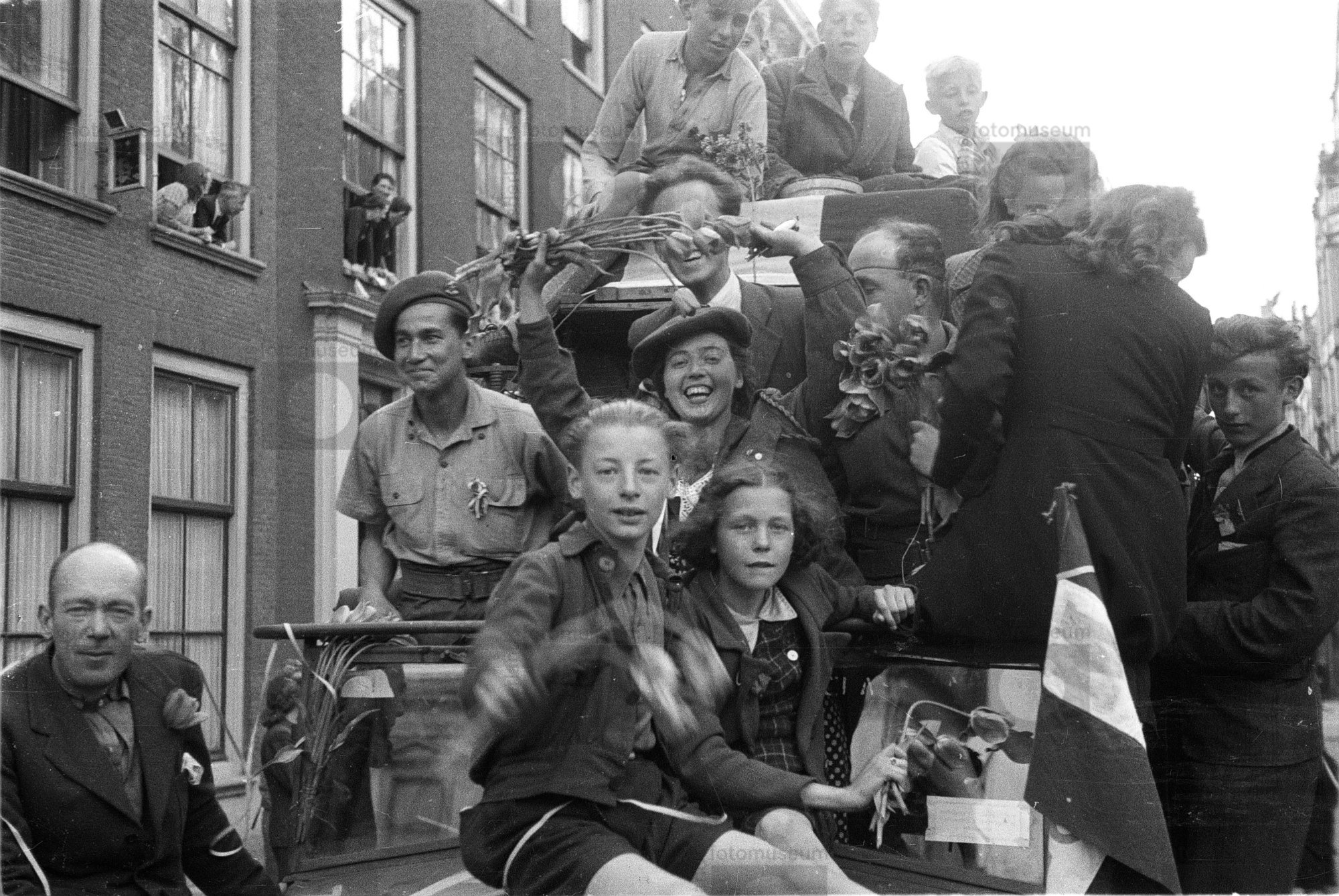 Tijdens de intocht van geallieerde troepen in Den Ha...
