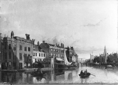 Gezicht op de Binnenamstel achter de Nieuwe Doelenst...