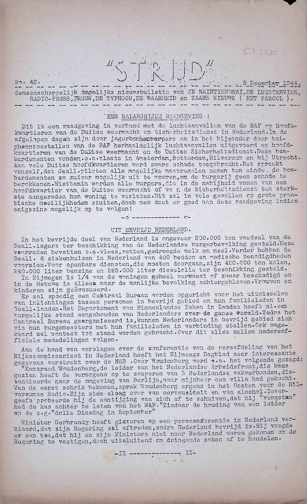 Strijd, Gemeenschappelijk dagelijks nieuwsbulletin v...