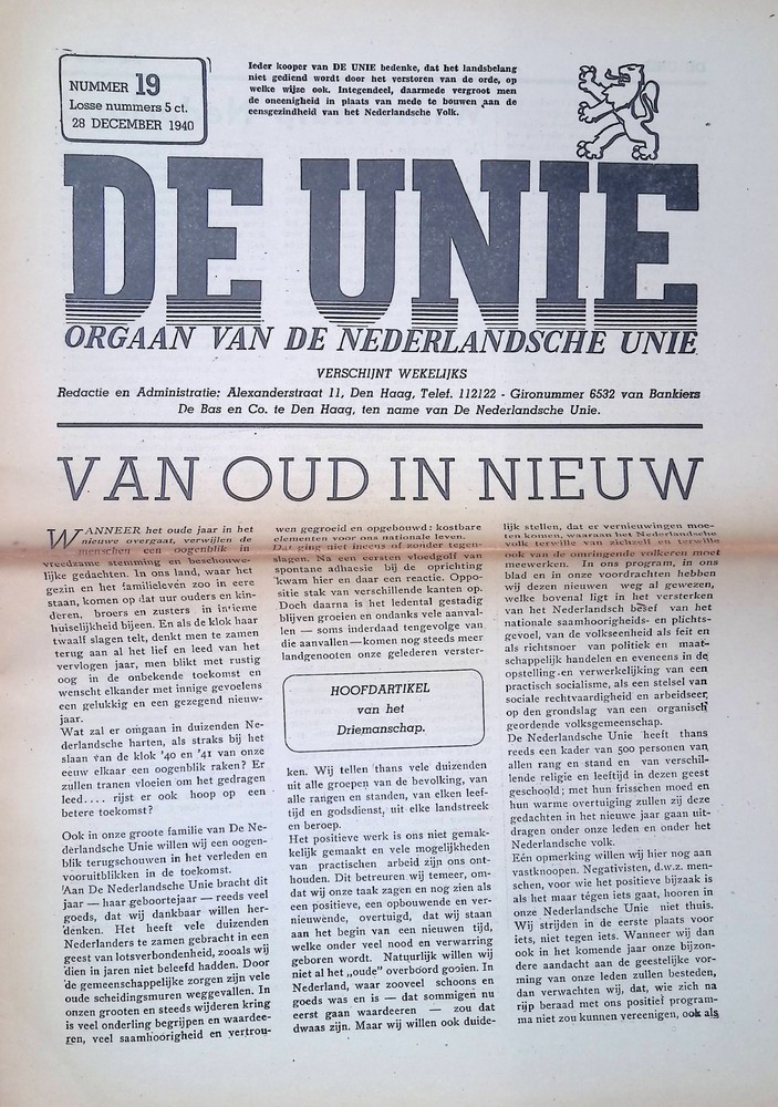 De Unie 28 december 1940 no 19