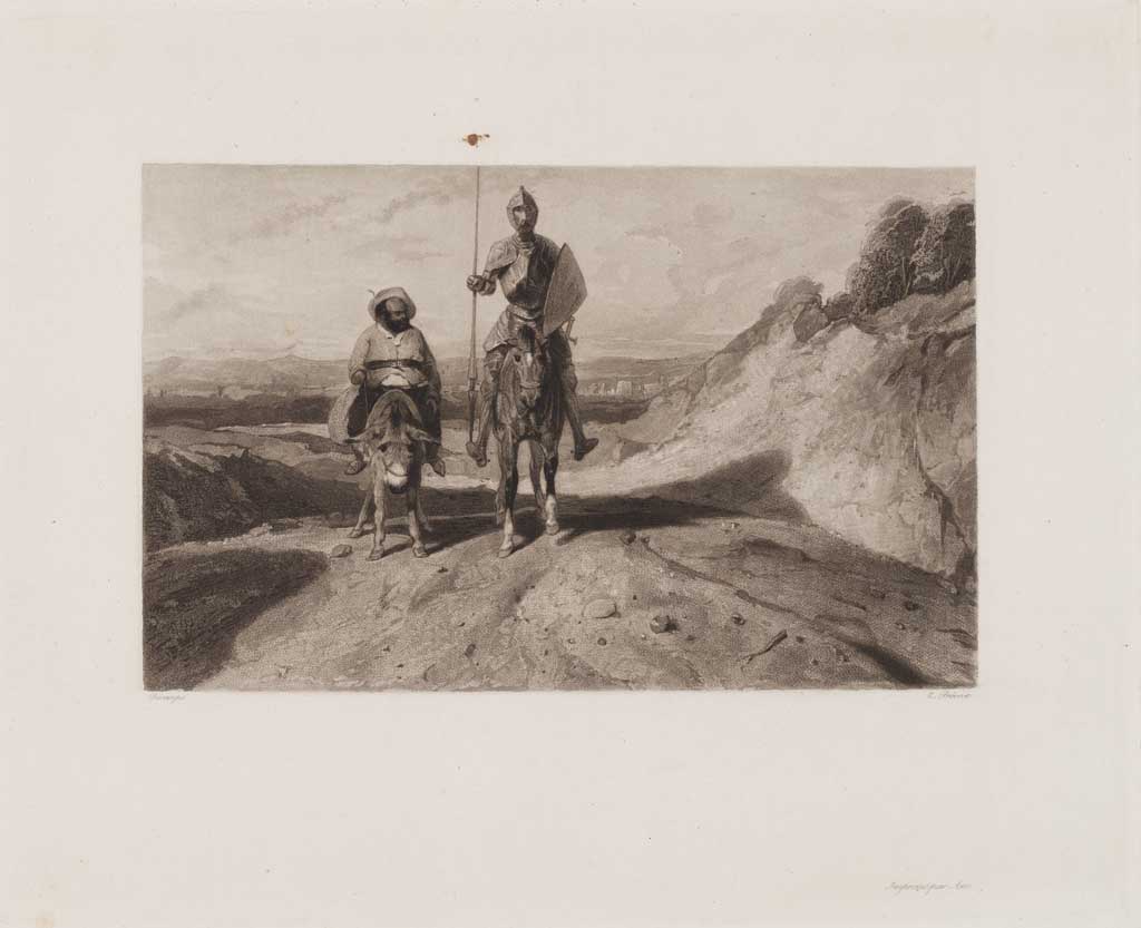 Don Quichotte en zijn knecht in het korenveld
