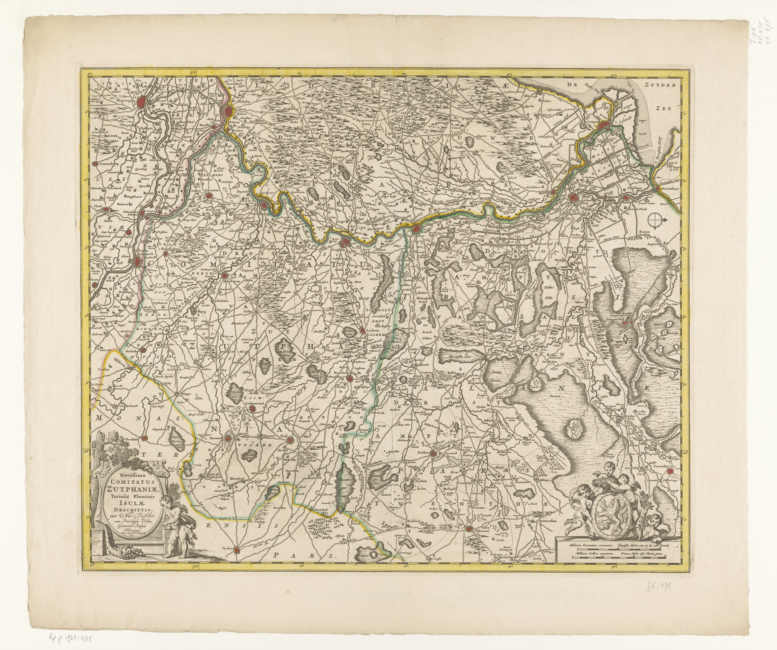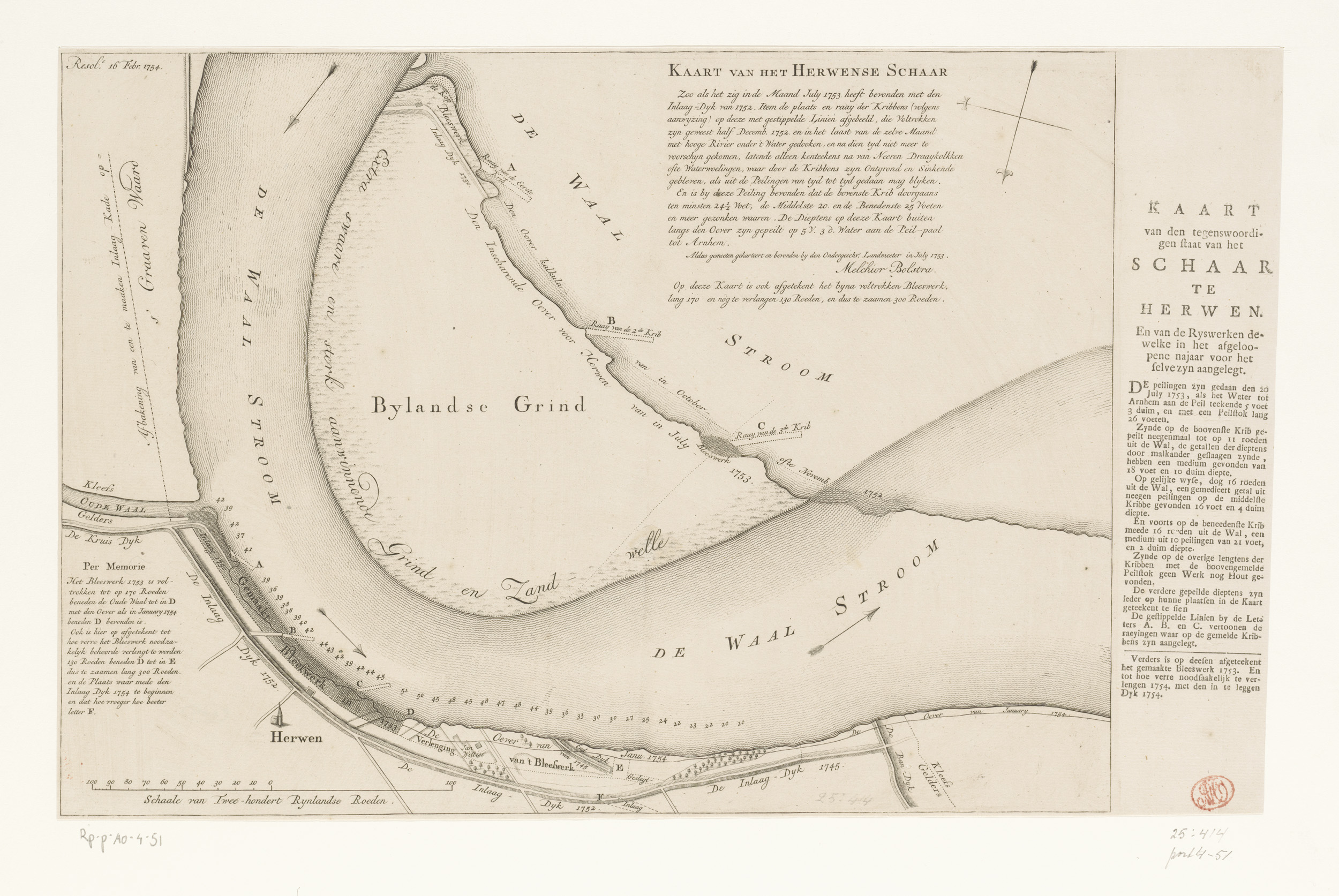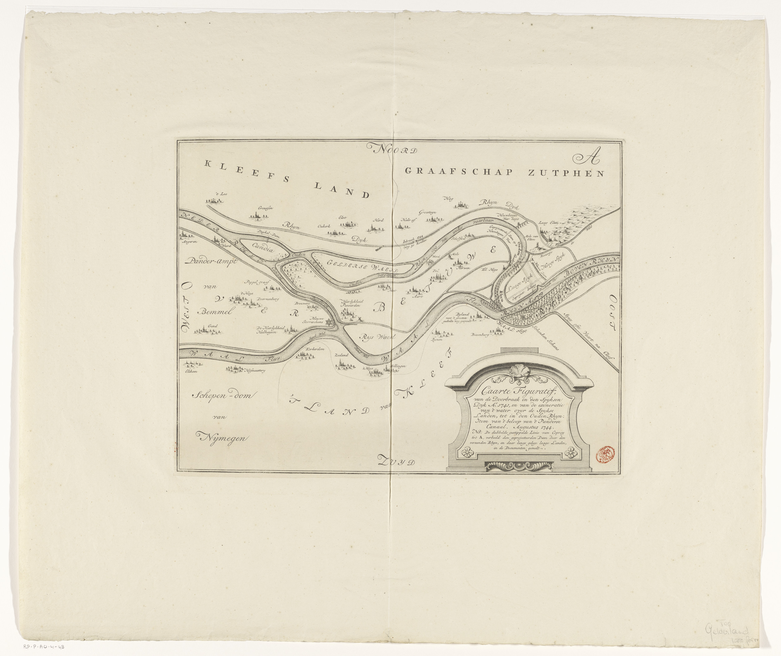 Kaart van de doorbraak van de Spijkse dijk in 1741