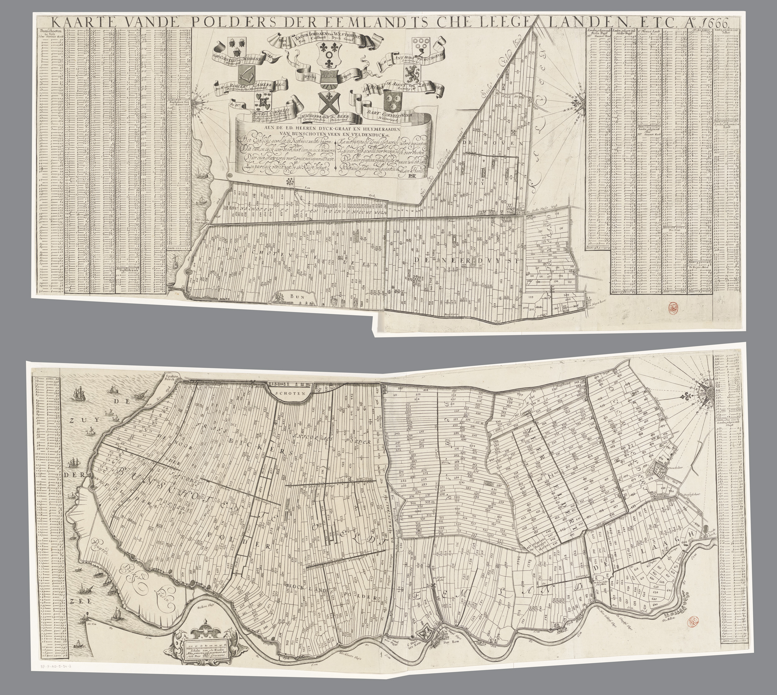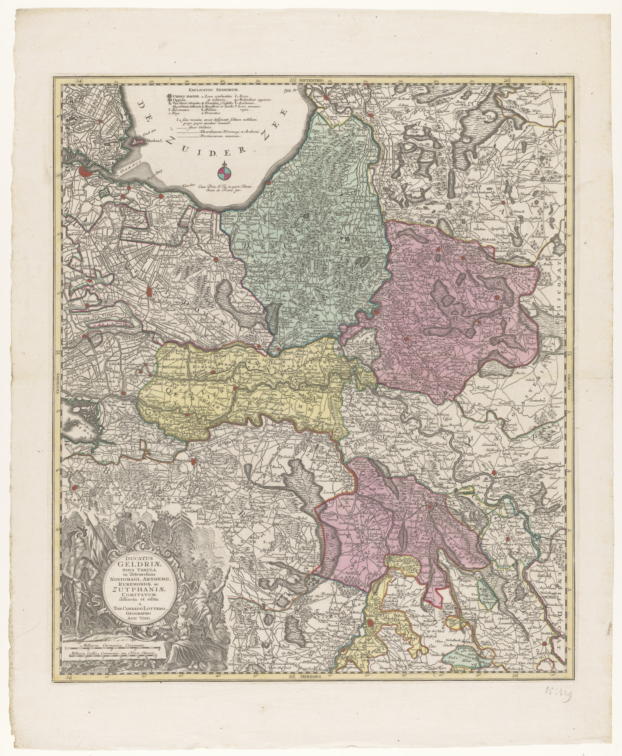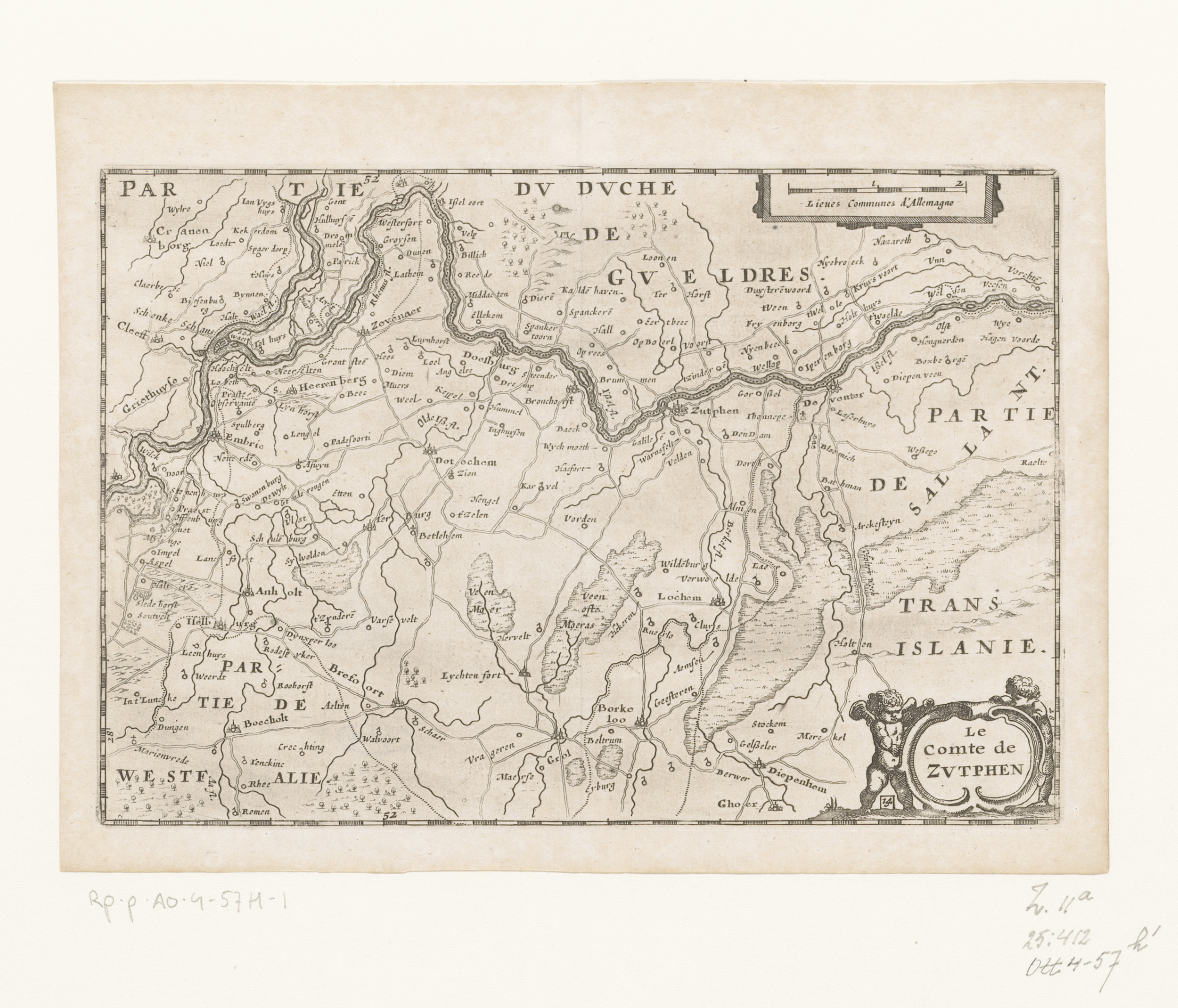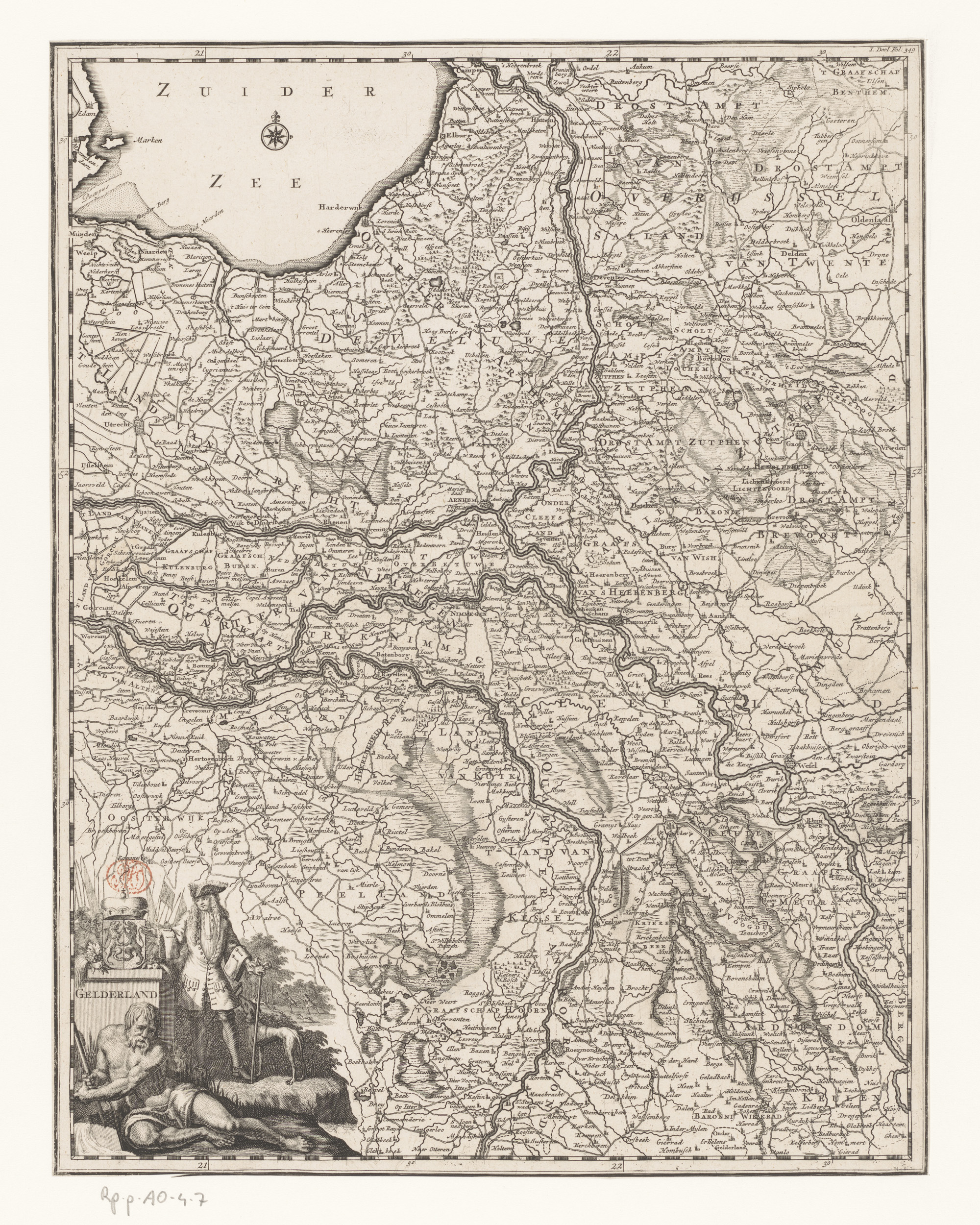 Kaart van de doorbraak van de Spijkse dijk in 1741