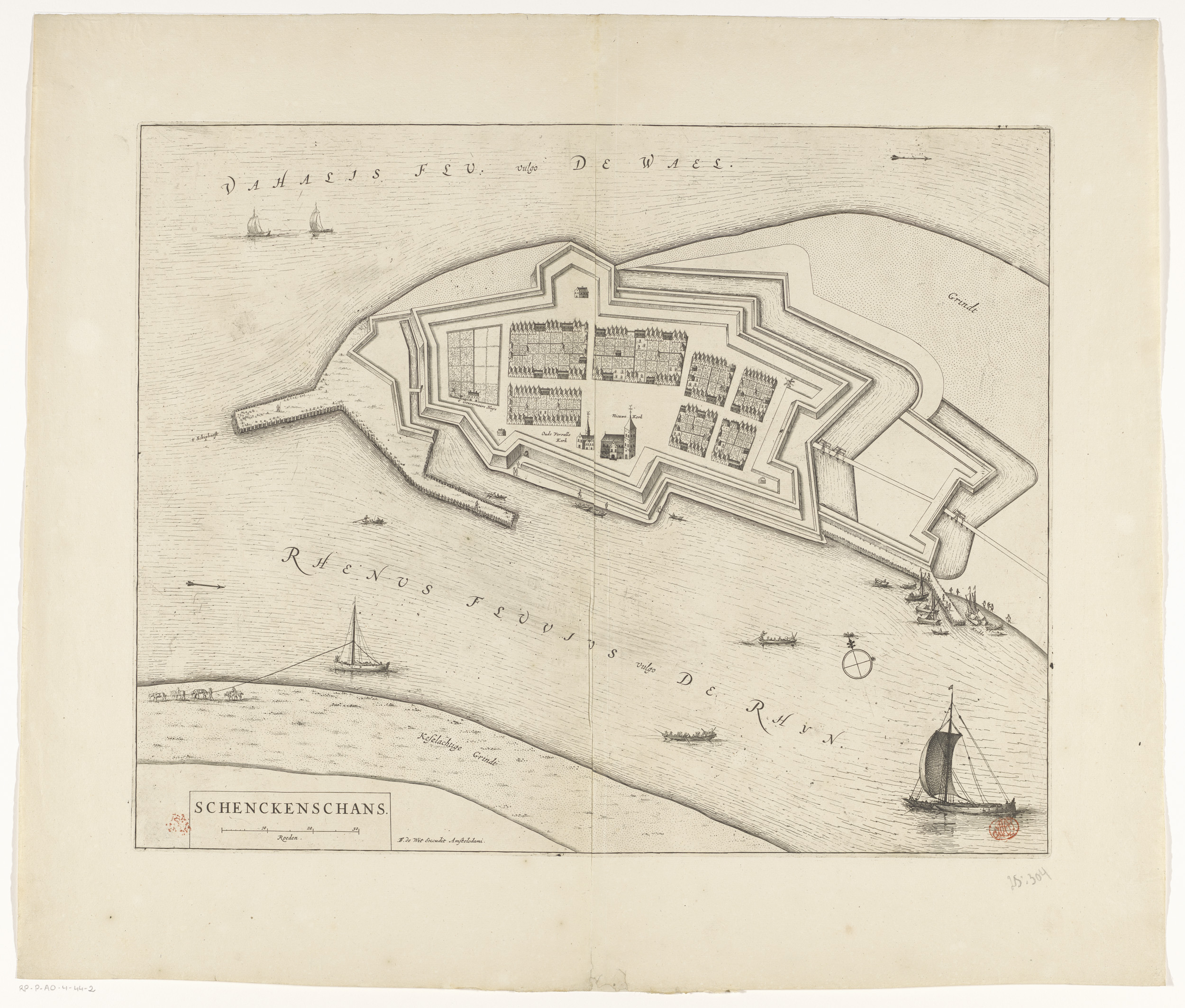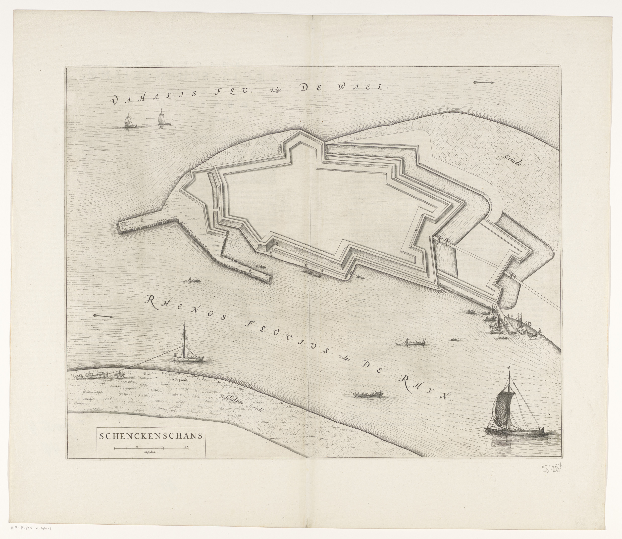 Kaart van het gebied rond de Waal van Schenkenschanz...