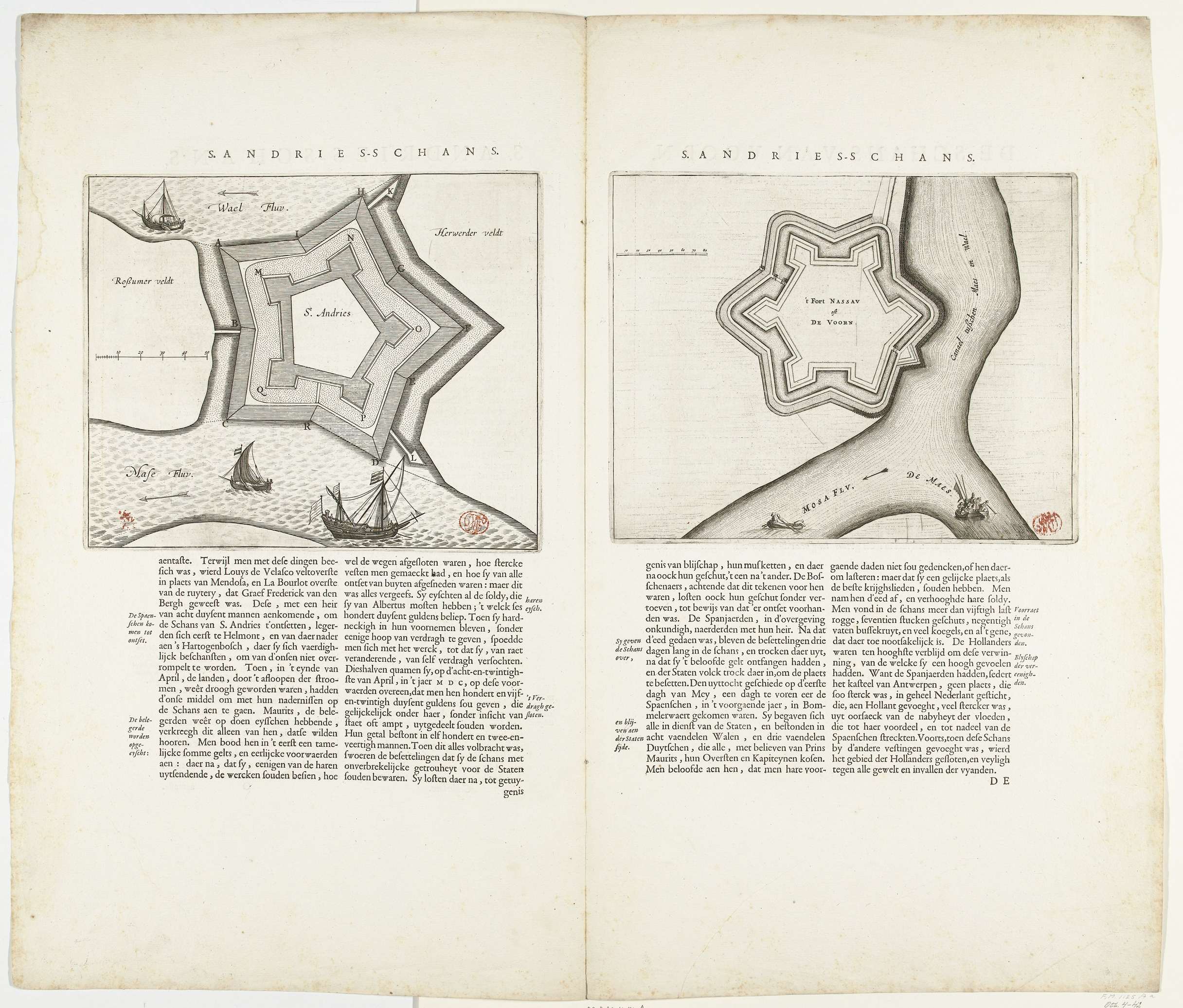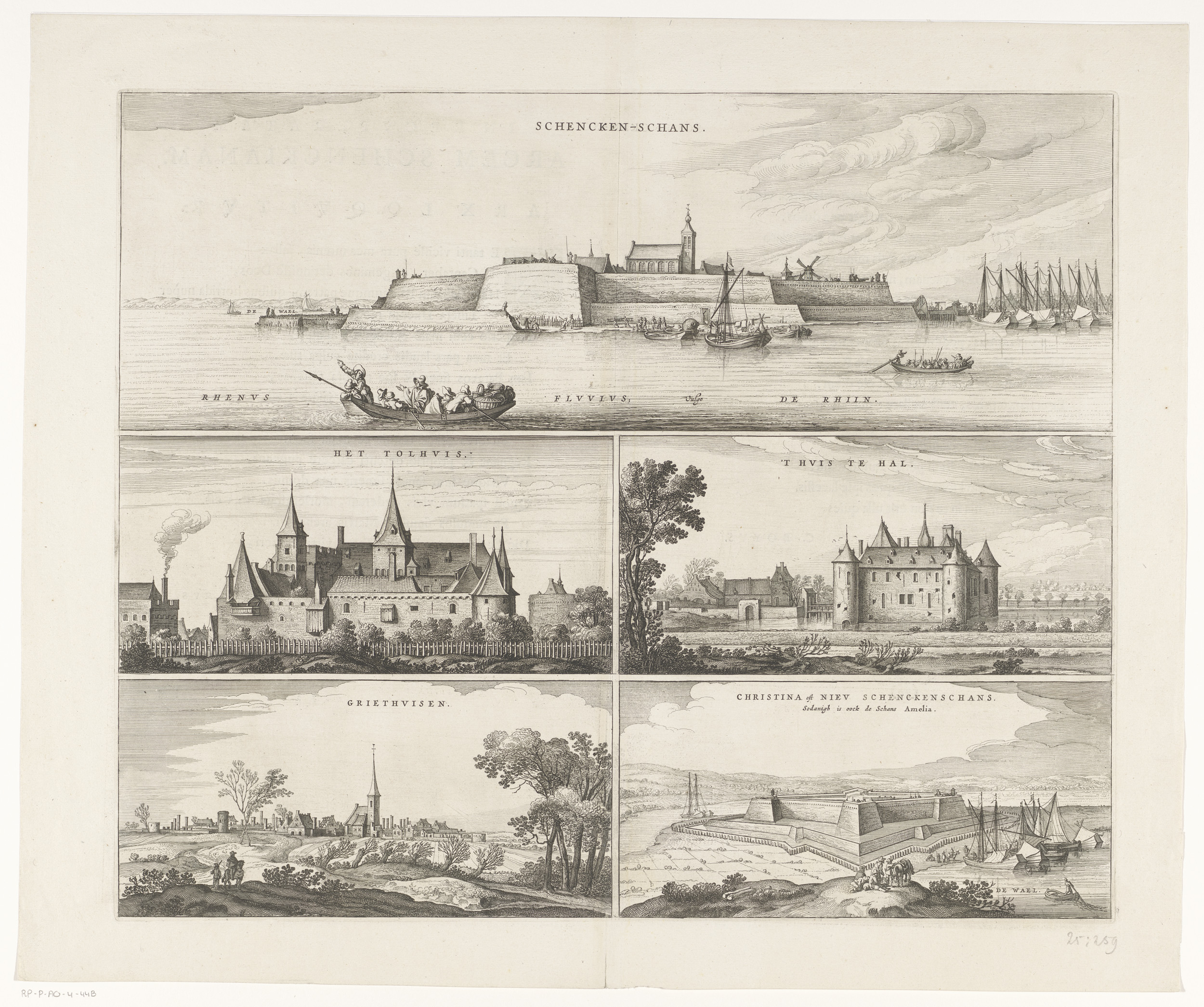Blad met Schenkenschans en vier andere gezichten, 1635