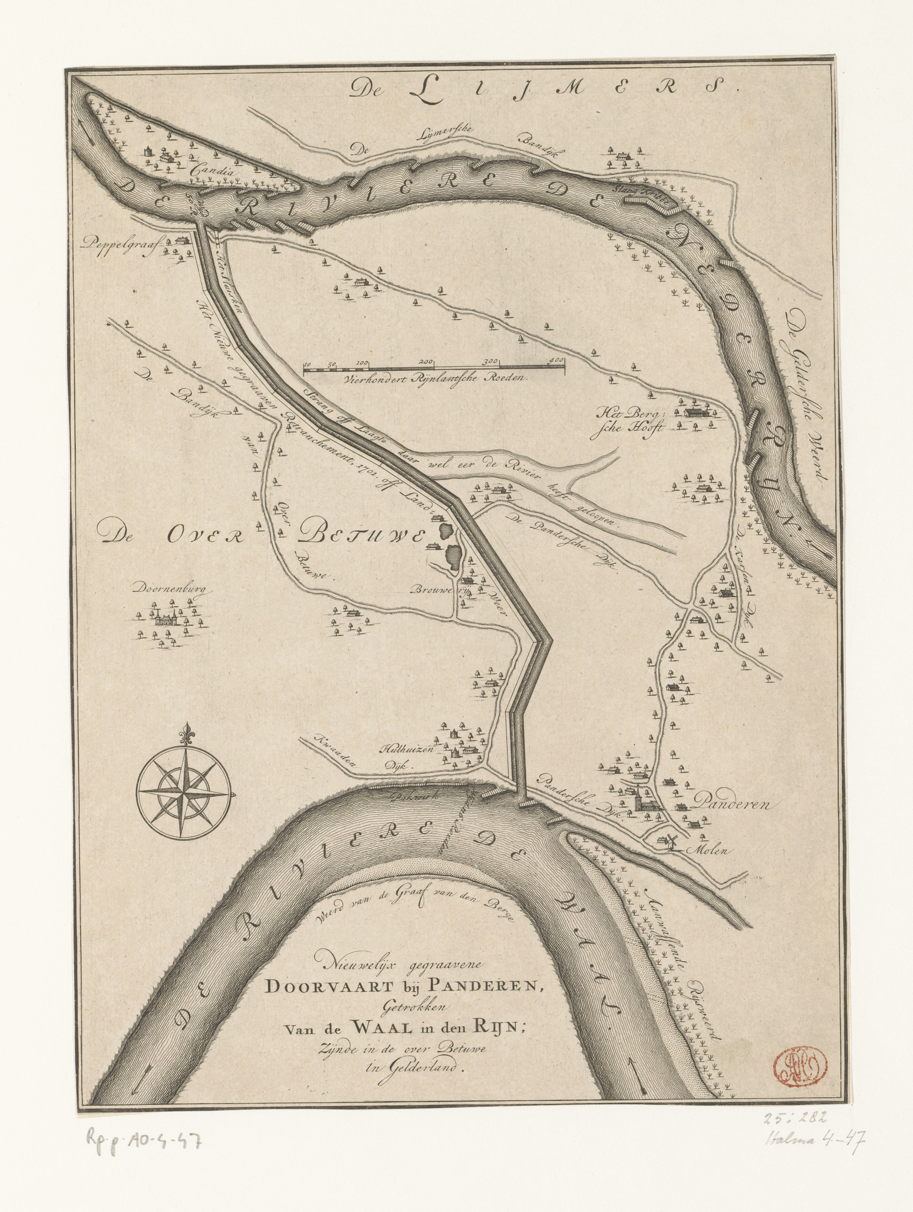 Kaart met het kanaal tussen de Nederrijn en de Waal ...