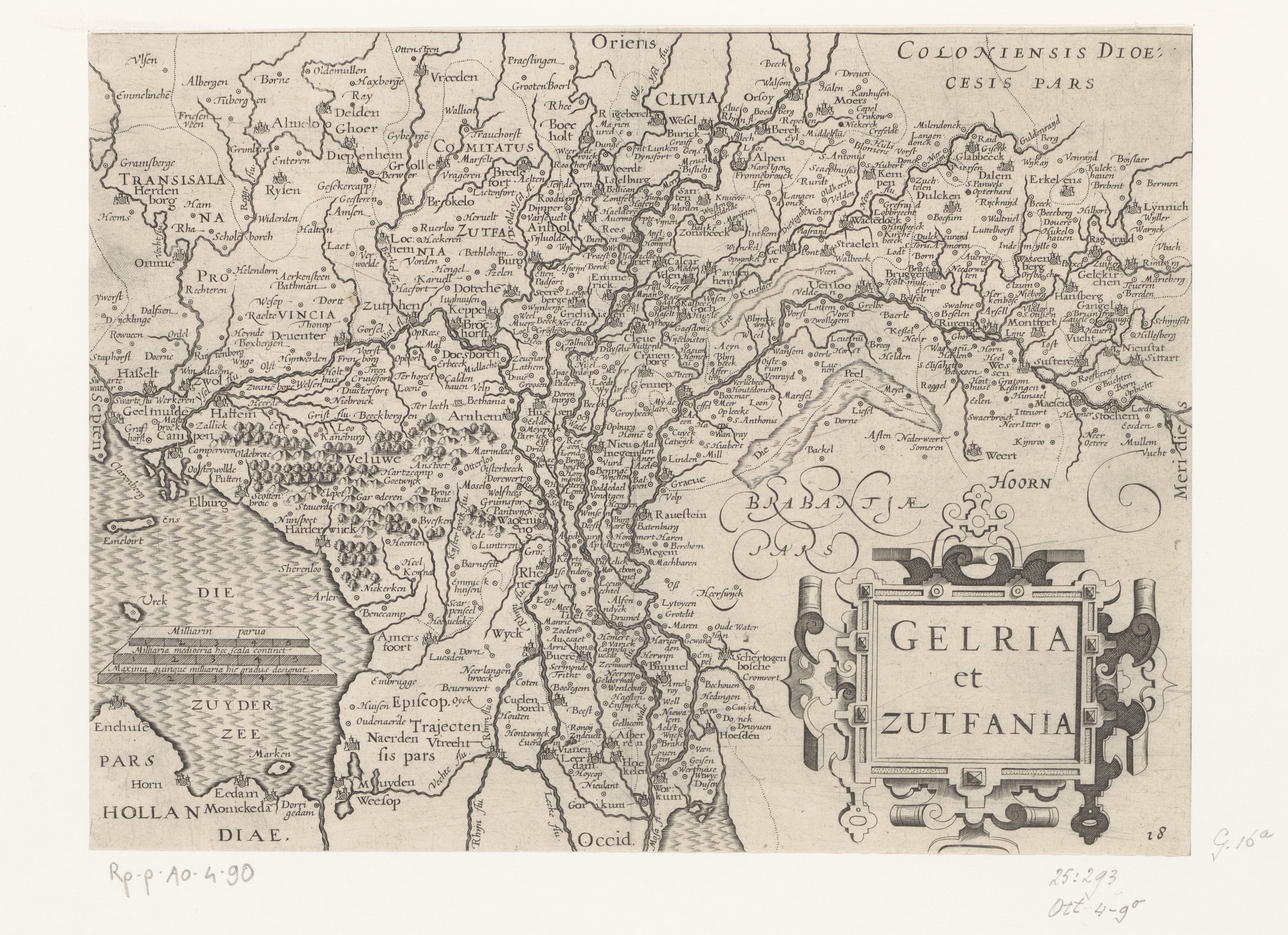 Kaart van het gebied rond de Waal en de Rijn bij Oss...