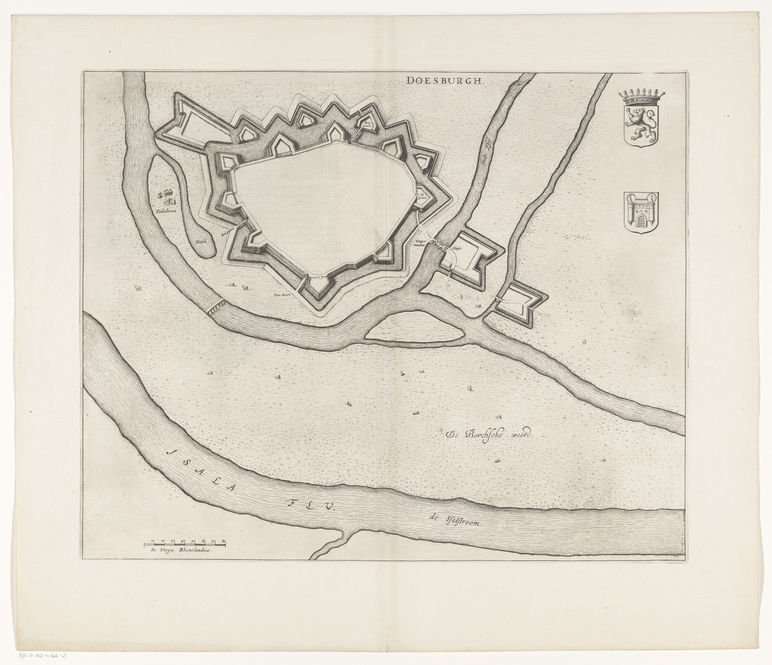 Plattegrond van de stad en het kasteel van Bredevoor...