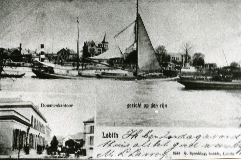 Zwart-wit foto van een gezicht op den Rijn met op de...