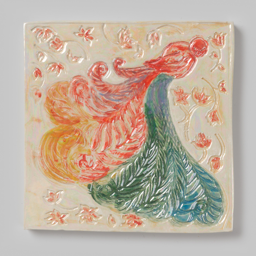 randtegel van keramiek in cloisonné-techniek, voorst...