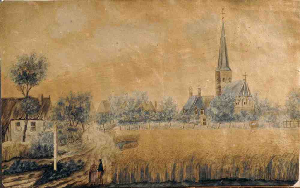 Aquarel van de oude kerk te Beekbergen