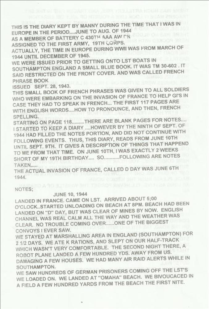 This is the diary kept by Manny during the time that...