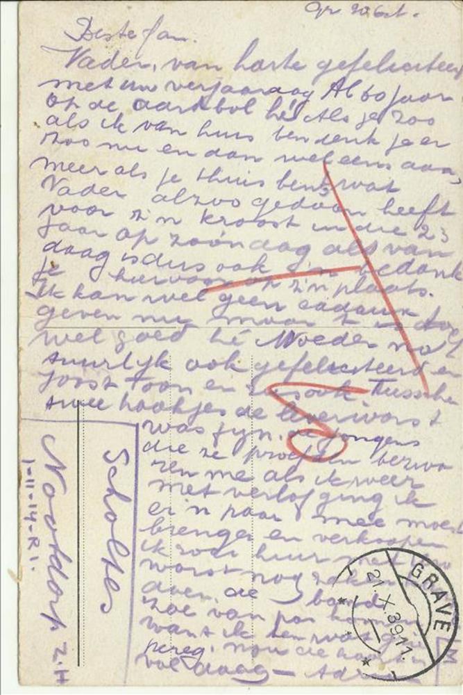 Briefkaart van Dhr Scholtes, dienstplichtig militair...