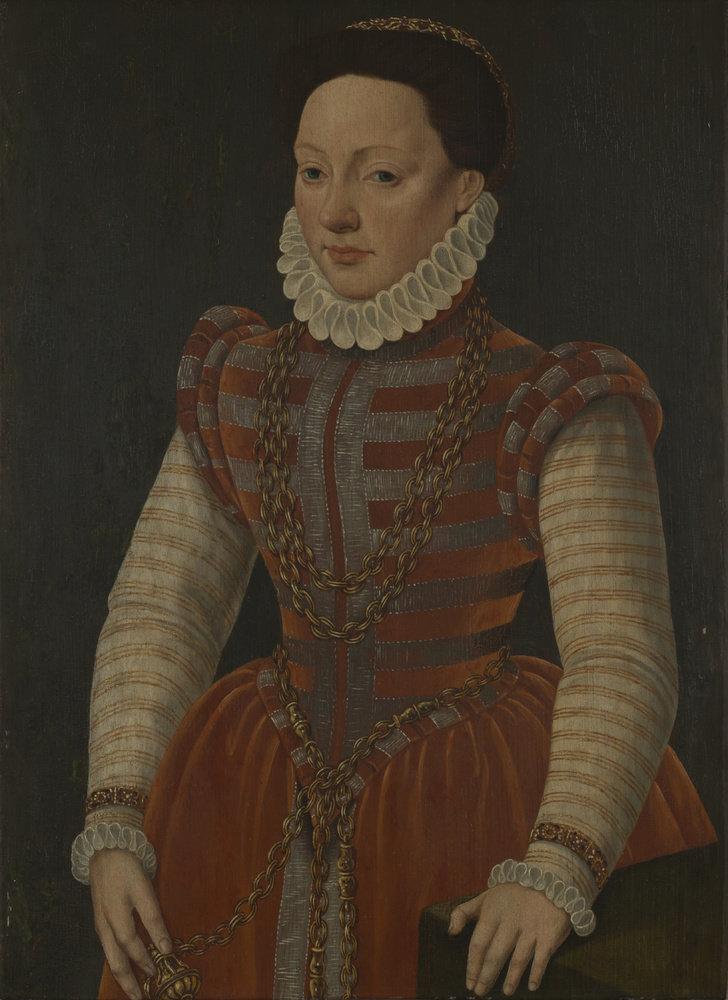 Portret "Onbekende dame" op hout, uit de school van ...
