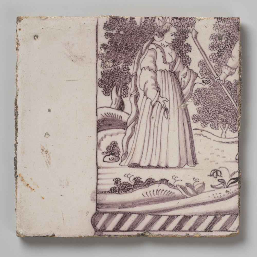 tegel van keramiek met tinglazuur, voorstellende: Da...