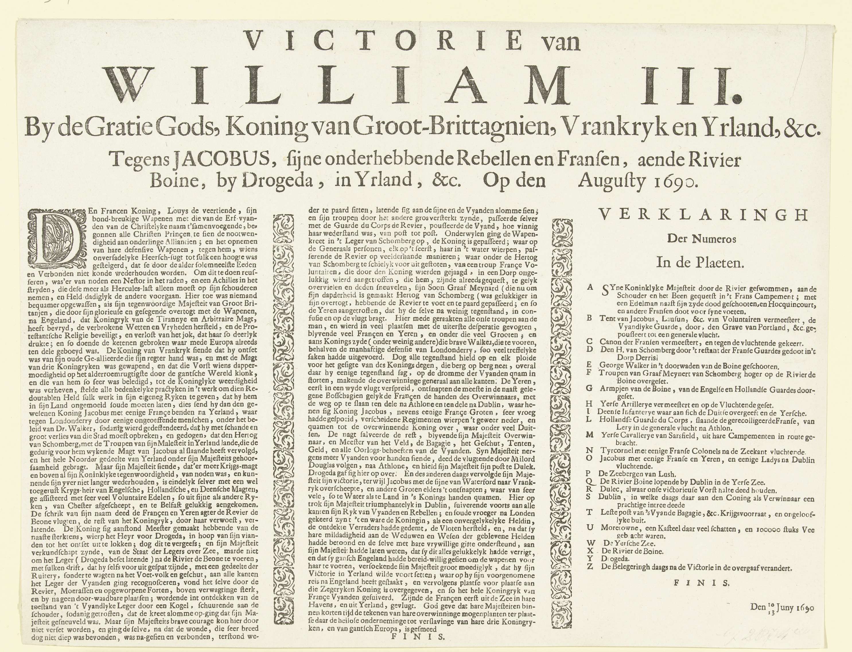 Tekstblad bij de prent van de overwinning van Willem...