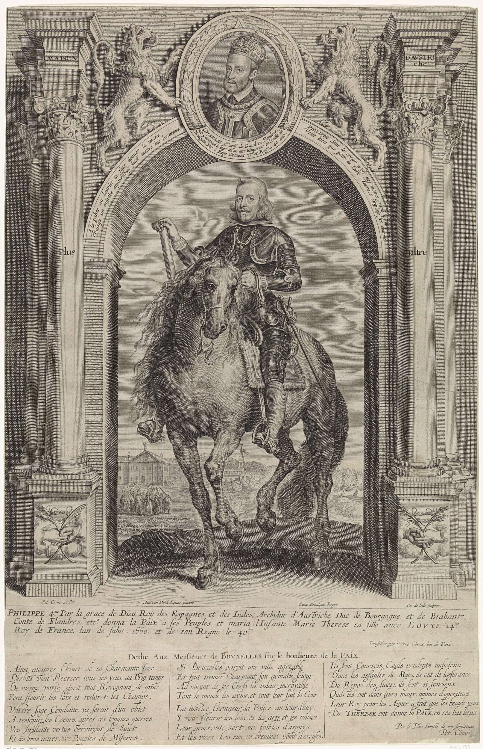 Ruiterportret van Filips IV van Spanje onder triomfboog