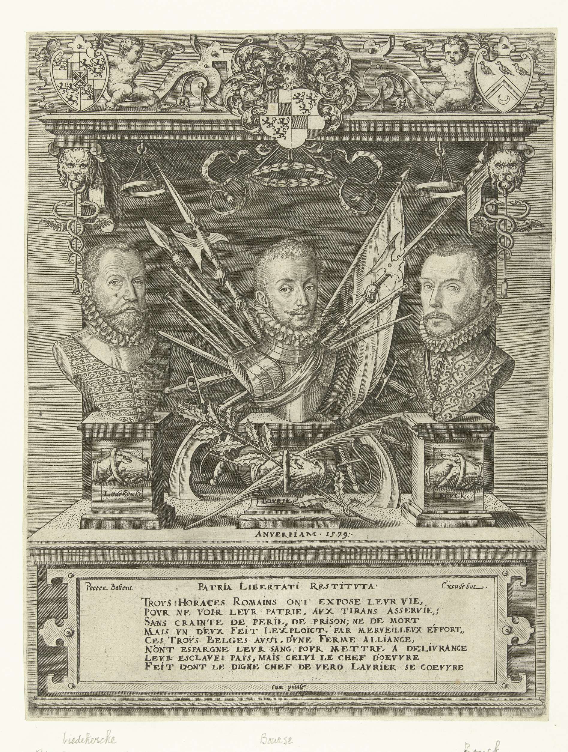 Titelprent met portretten van de helden Liedekercke,...