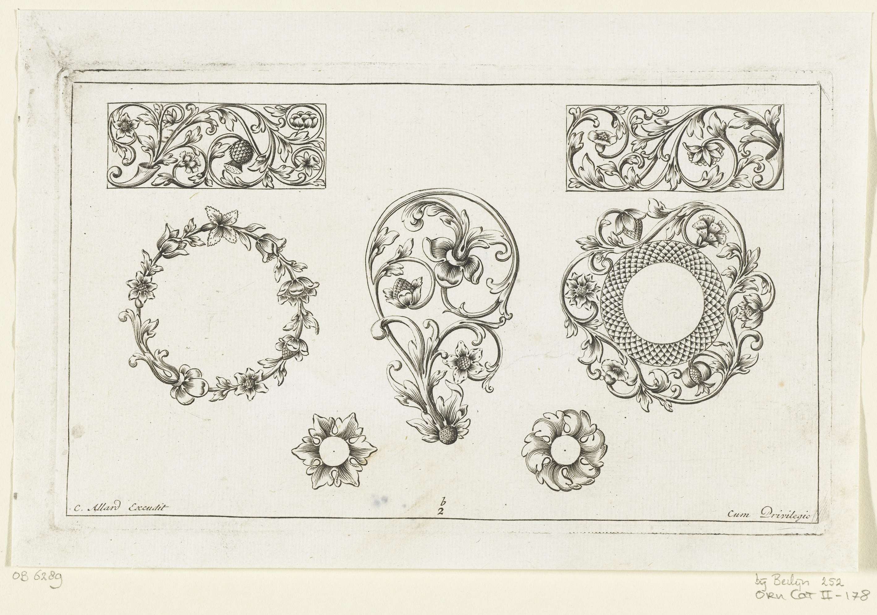 Twee grote en drie kleine motieven met bladranken en...