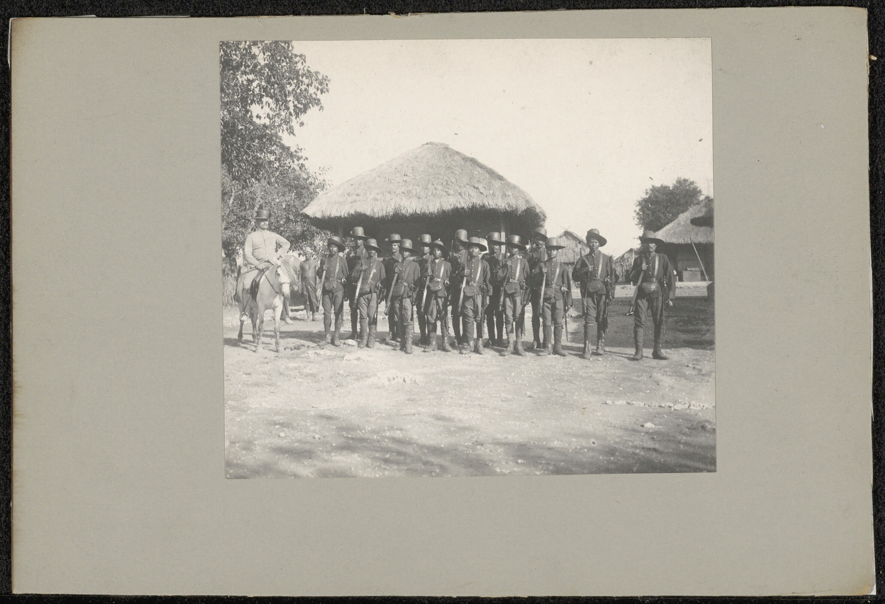 Groepsfoto van posthouder Abbing met een groep inlan...