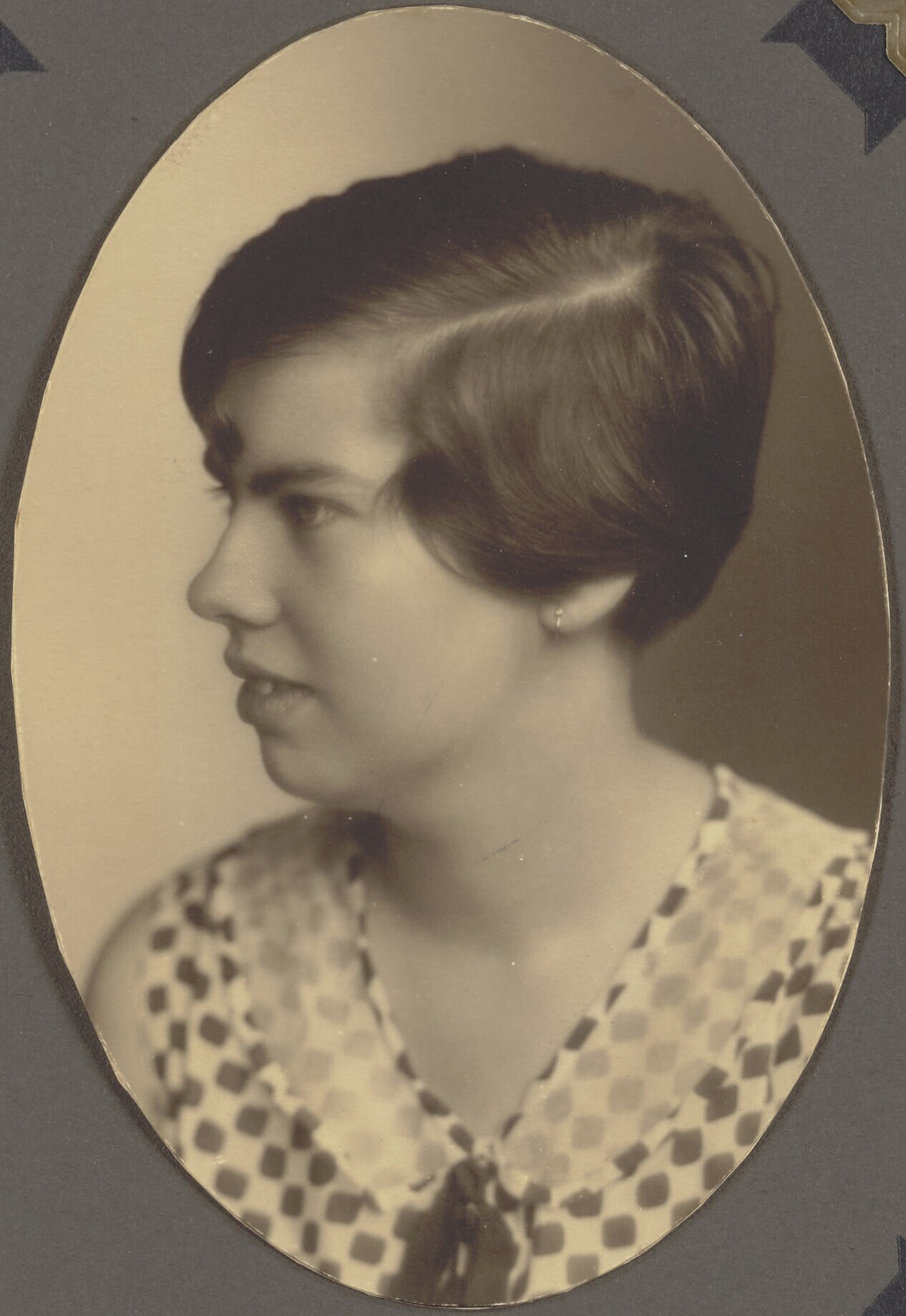 Portret van Thelma Douglas-Broers voor het badhuis P...