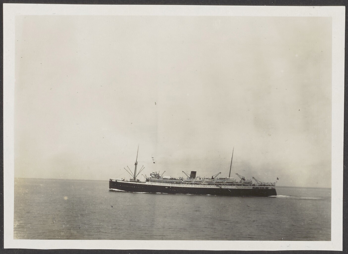 Het ms. Chr. Huygens op zee, volle kracht vooruit