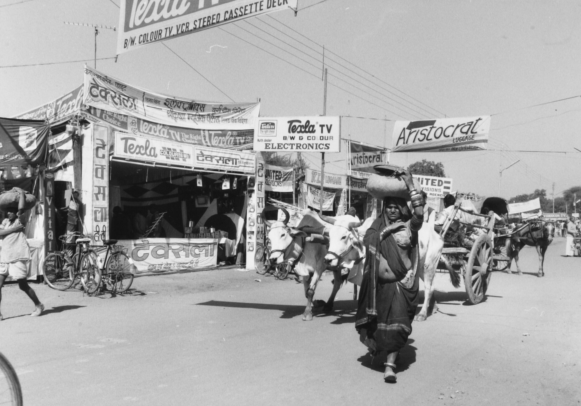 Straatbeeld in Hyderabad met links op de voorgrond e...