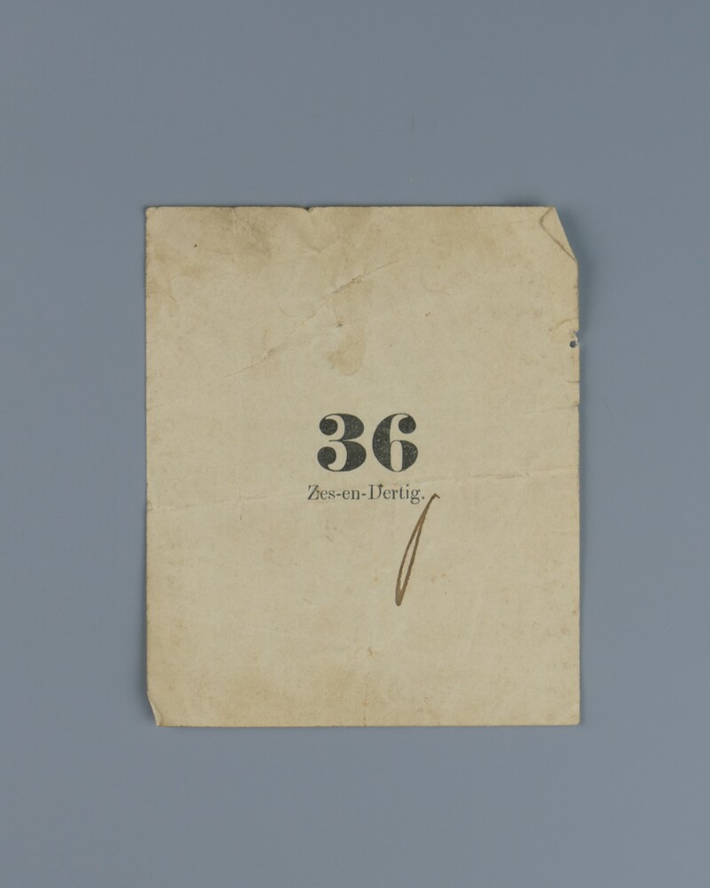 Kaartje van papier bedrukt met cijfers en letters ge...