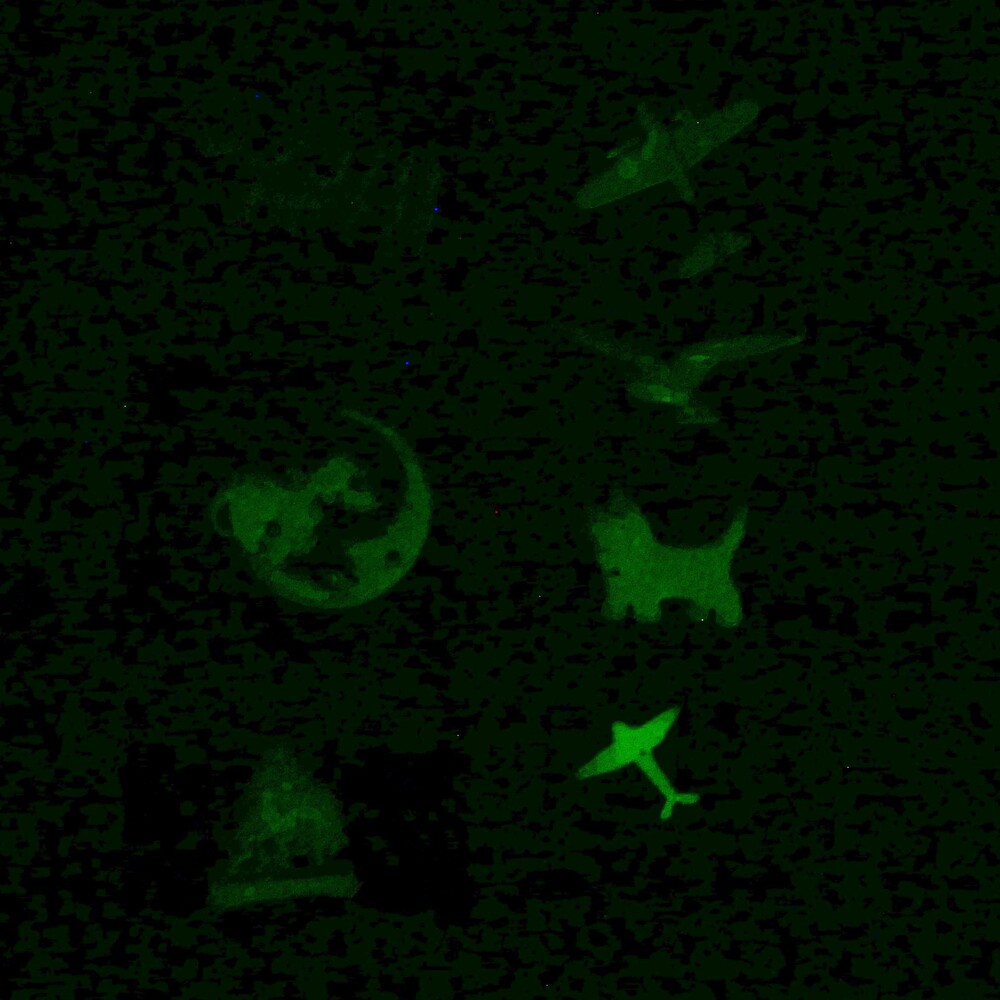 7 lichtgevende speldjes van kunststof uit omstreeks ...