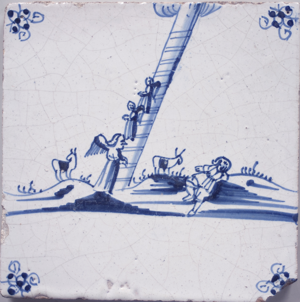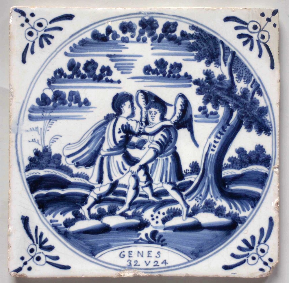 tegel van keramiek met tinglazuur, voorstellende: Ja...