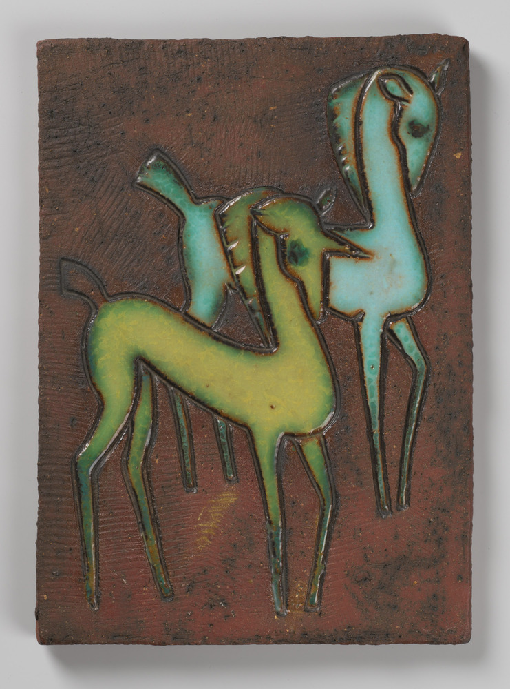 tegelveld, bestaande uit negen tegels van aardewerk ...